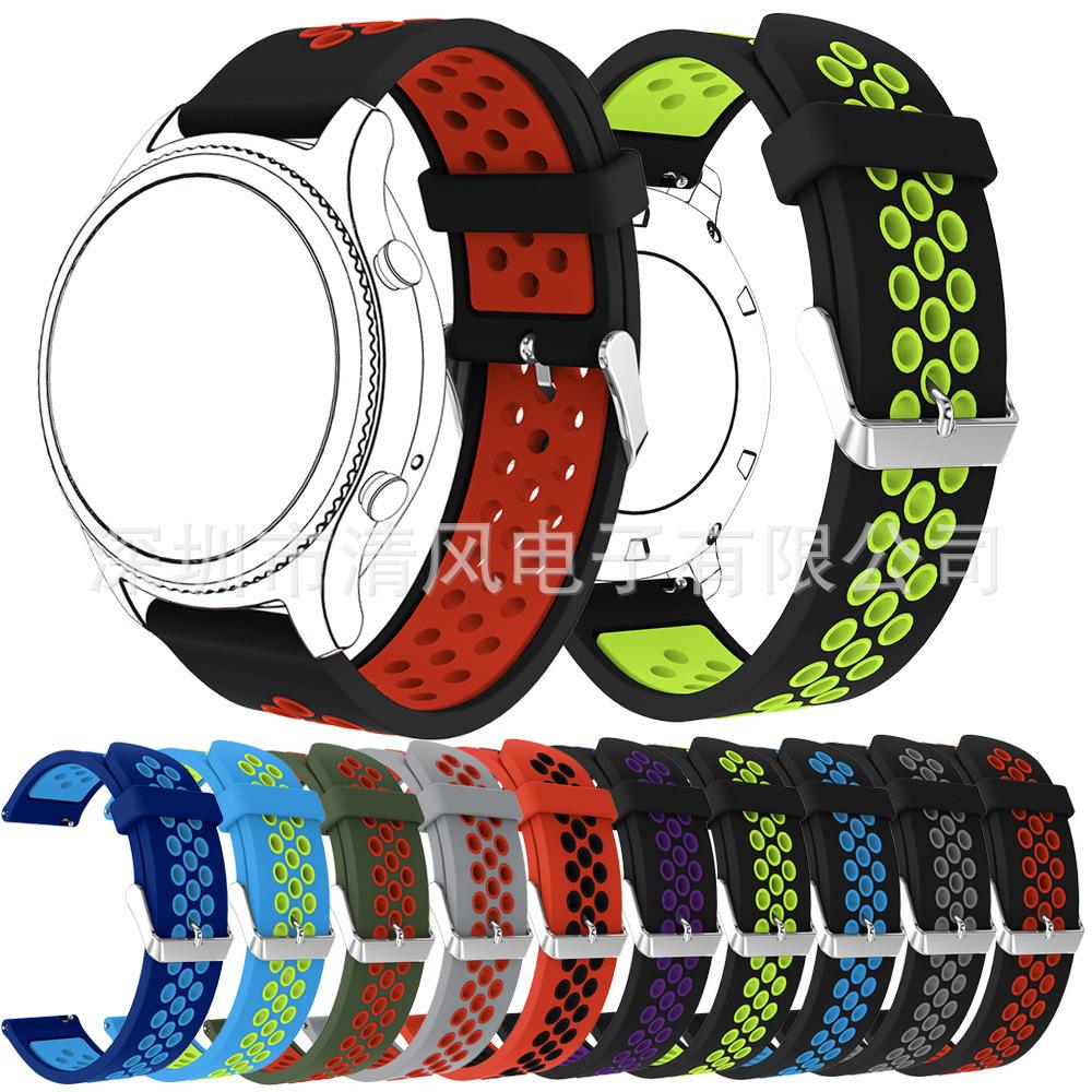 Pulseira de relógio de silicone Samsung S3 com furo redondo de duas cores e fivela de metal
