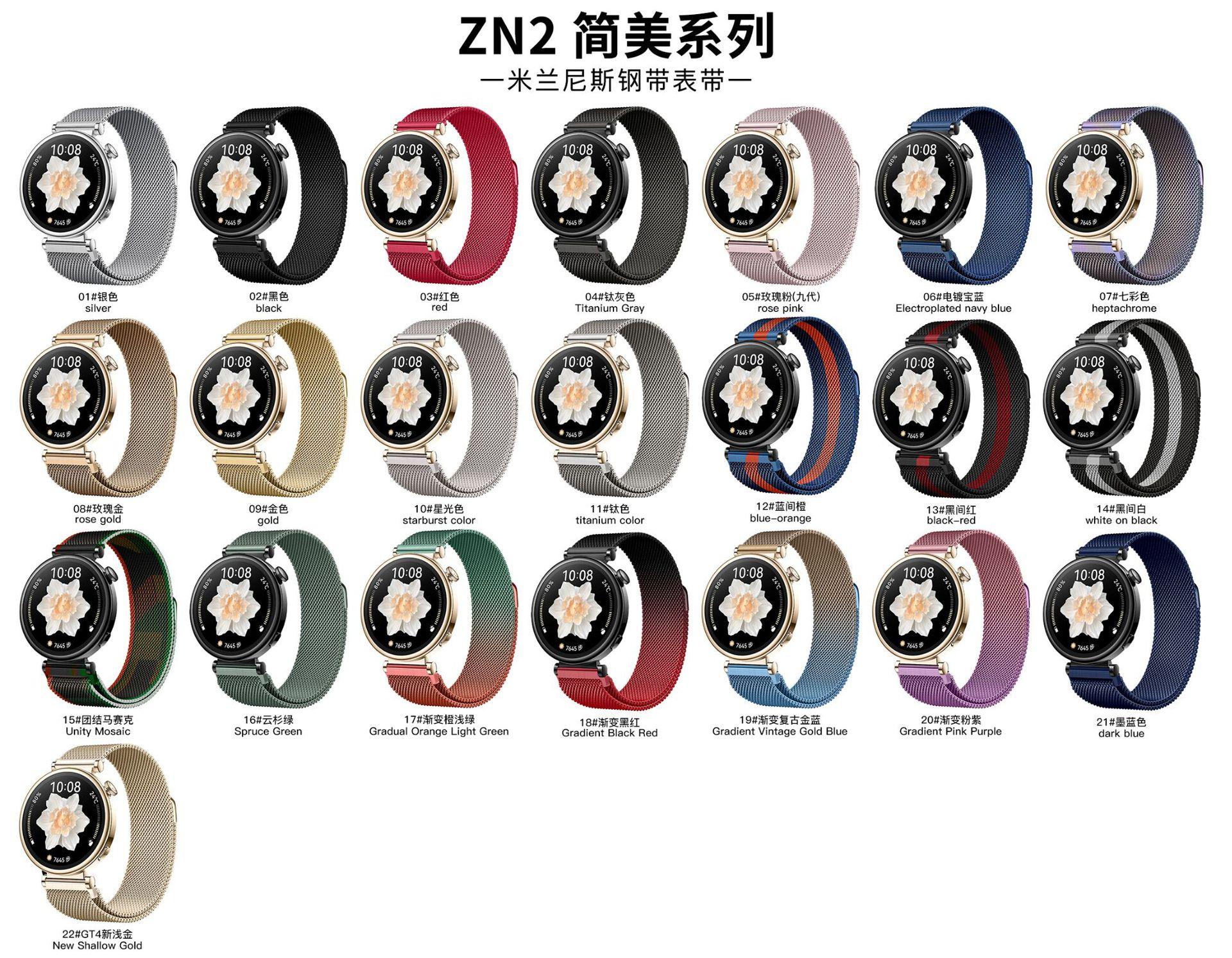 【Pulseira de aço milanês ZN2Aplicável a Huawei, Samsung, Garmin e outros relógios inteligentes】