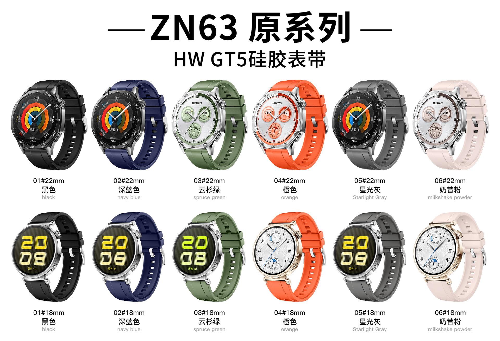 [Pulseira de relógio de silicone original série ZN63 HW GT5 18 mm 22 mm adequada para séries Huawei, séries Samsung e outros relógios inteligentes]