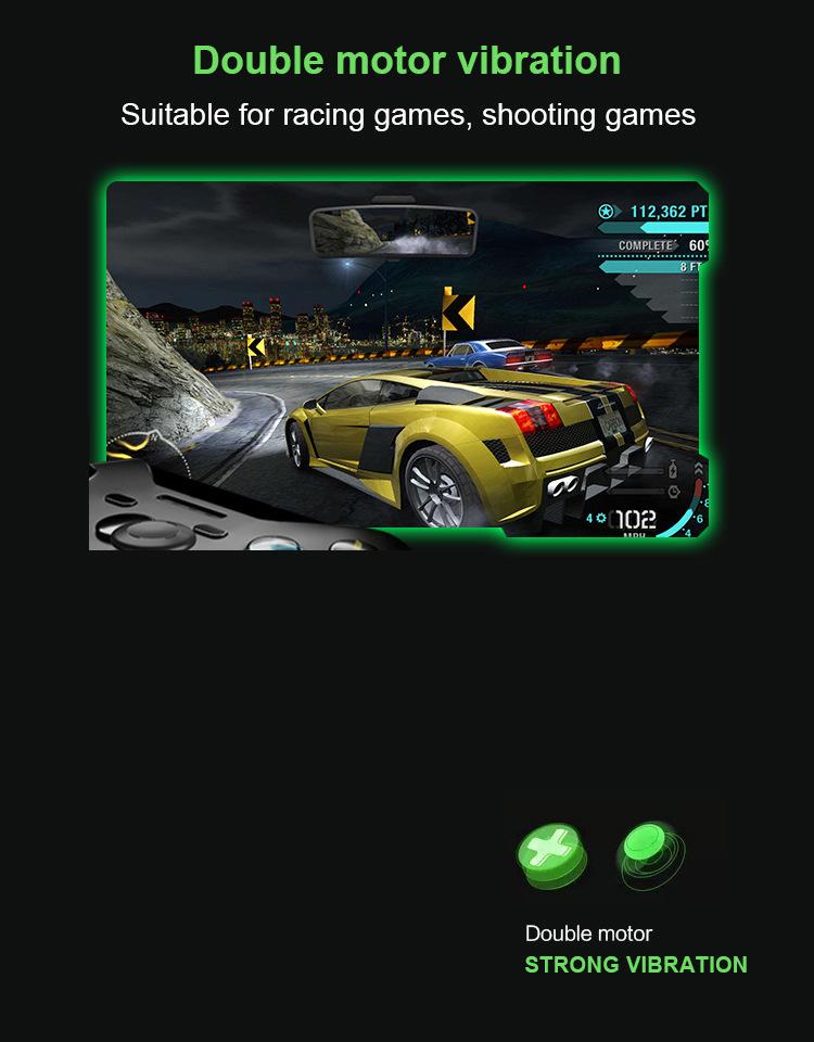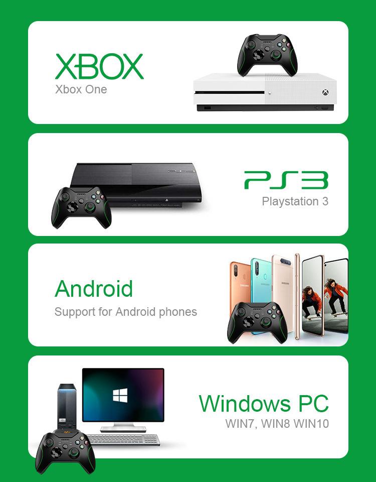Este controlador pode ser totalmente compatível com jogos e console Microsoft Xbox One e também suporta jogos de PC para Win7/8/10. Sua condição de funcionamento é a mesma do original. Este controlador foi projetado ergonomicamente, o que pode proporcionar uma sensação mais conveniente e confortável ao jogar. A função de vibração dupla fará você se sentir mais real. O design simplificado também é um destaque deste produto.