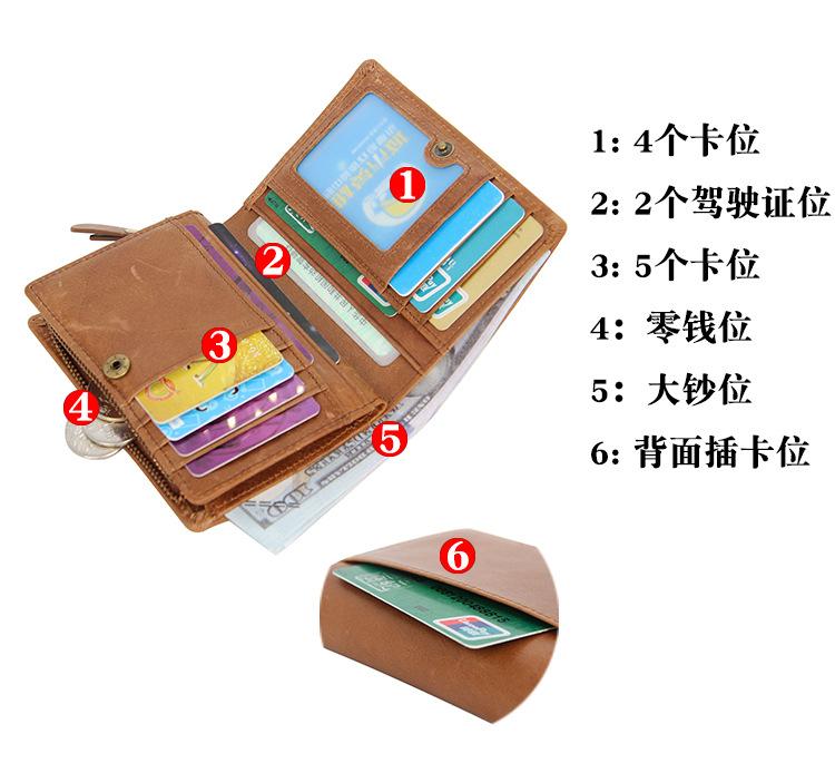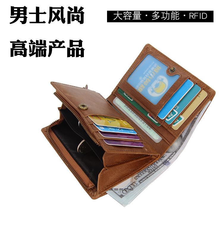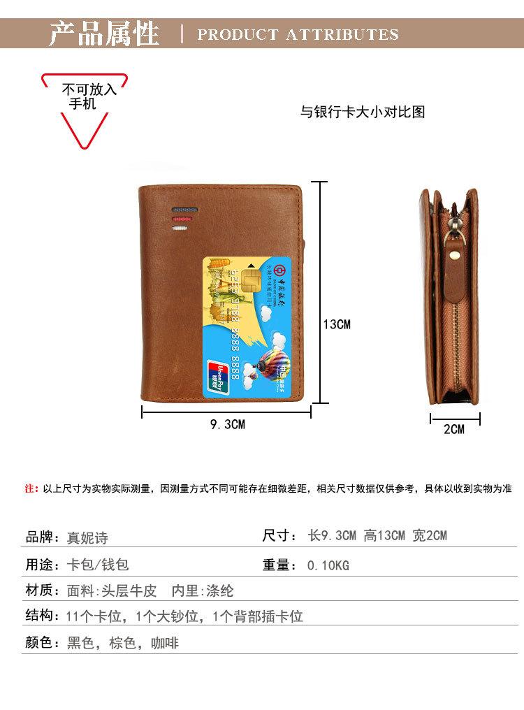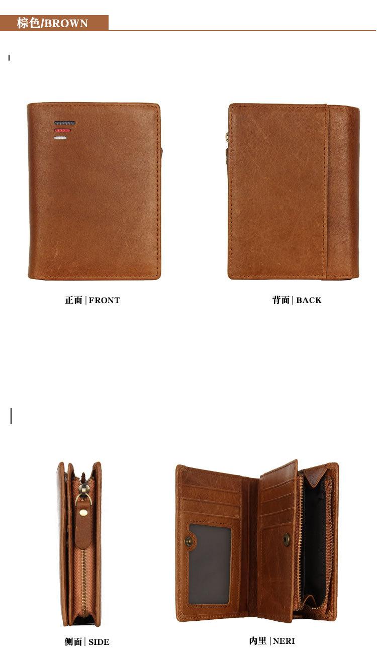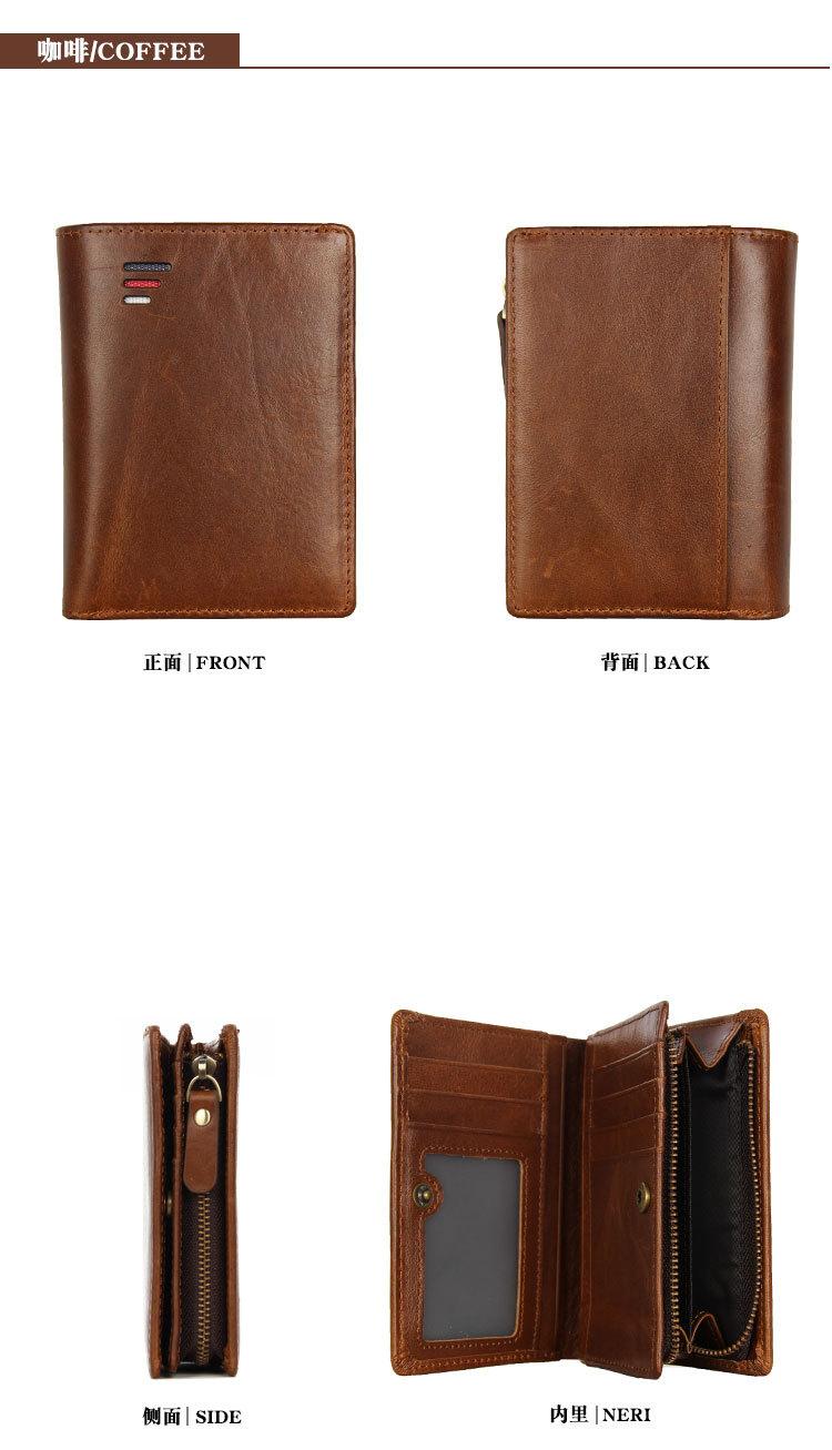 Carteira masculina de couro legítimo Carteira dobrável masculina curta com vários compartimentos para cartões Carteira de couro legítimo para moedas