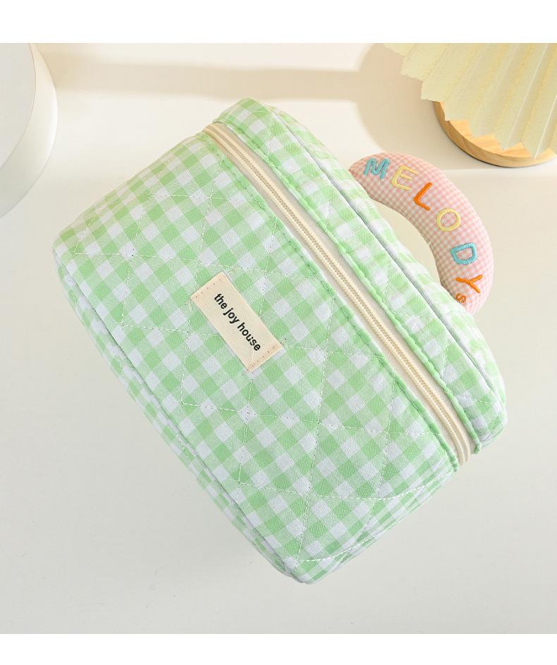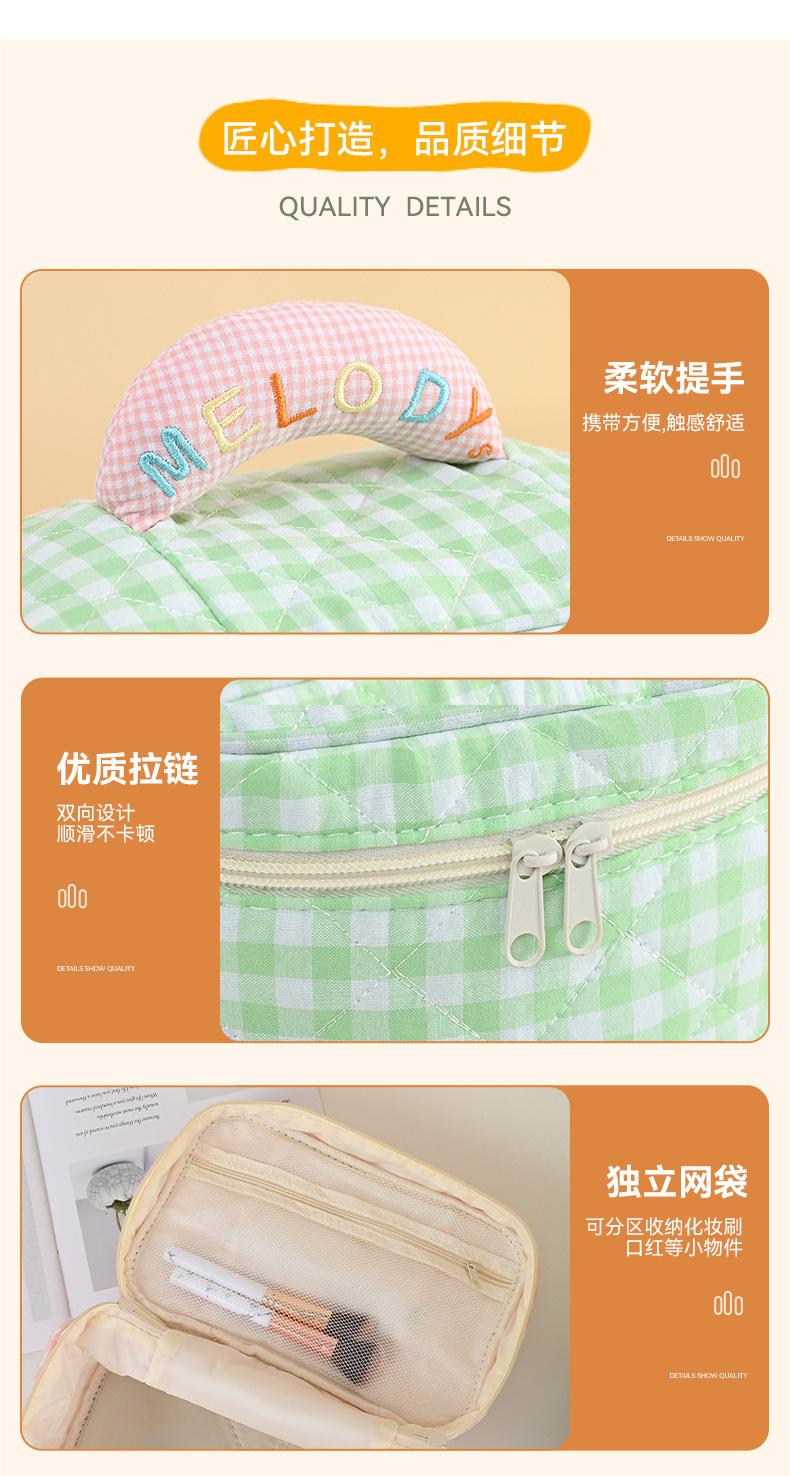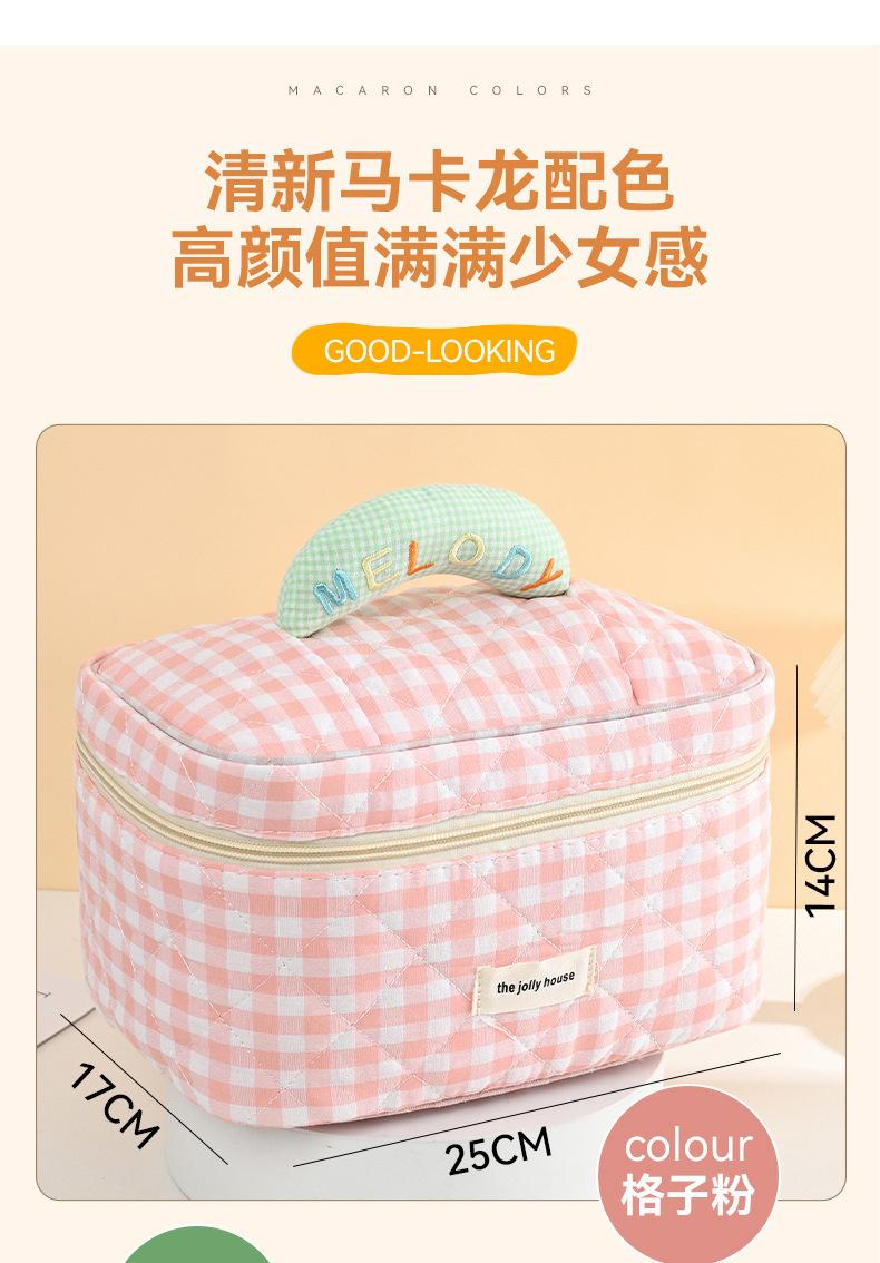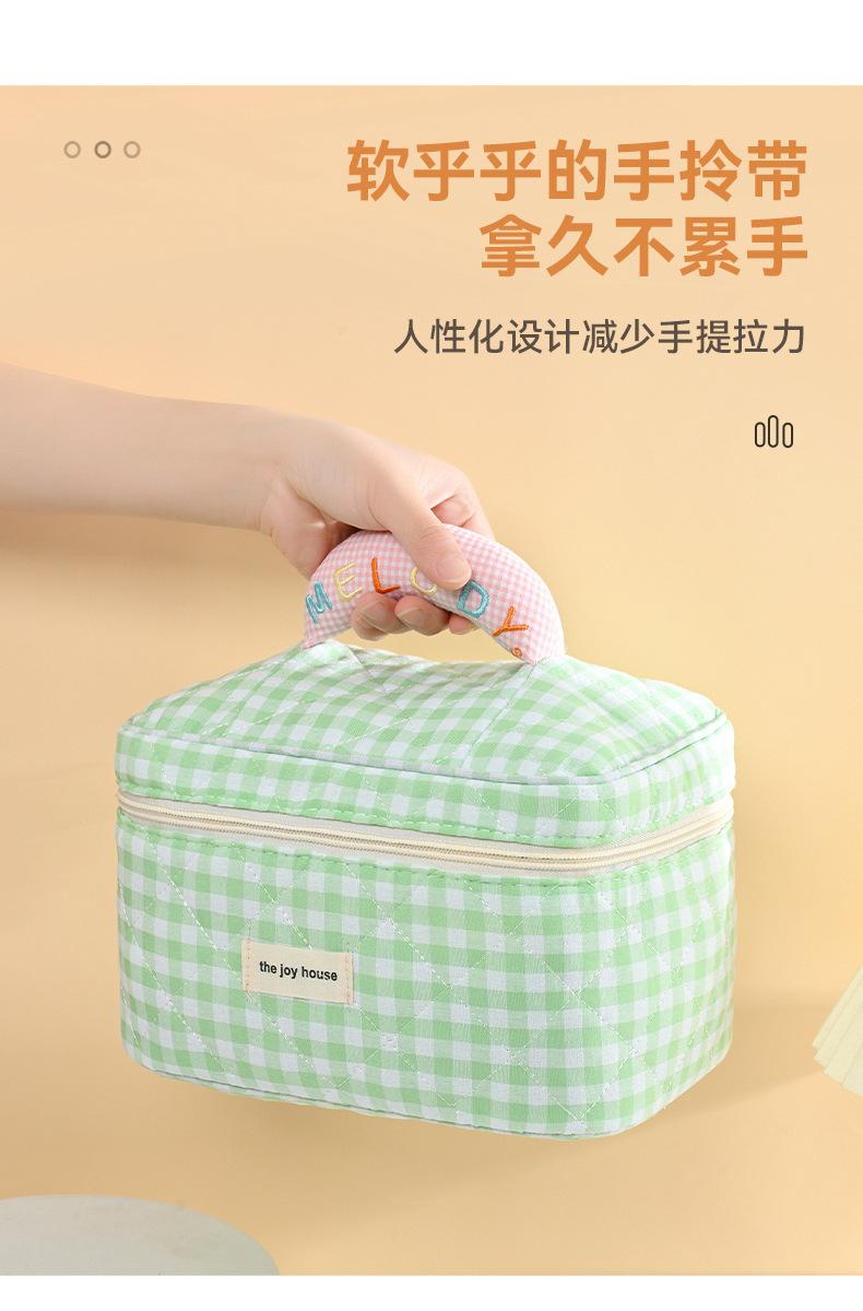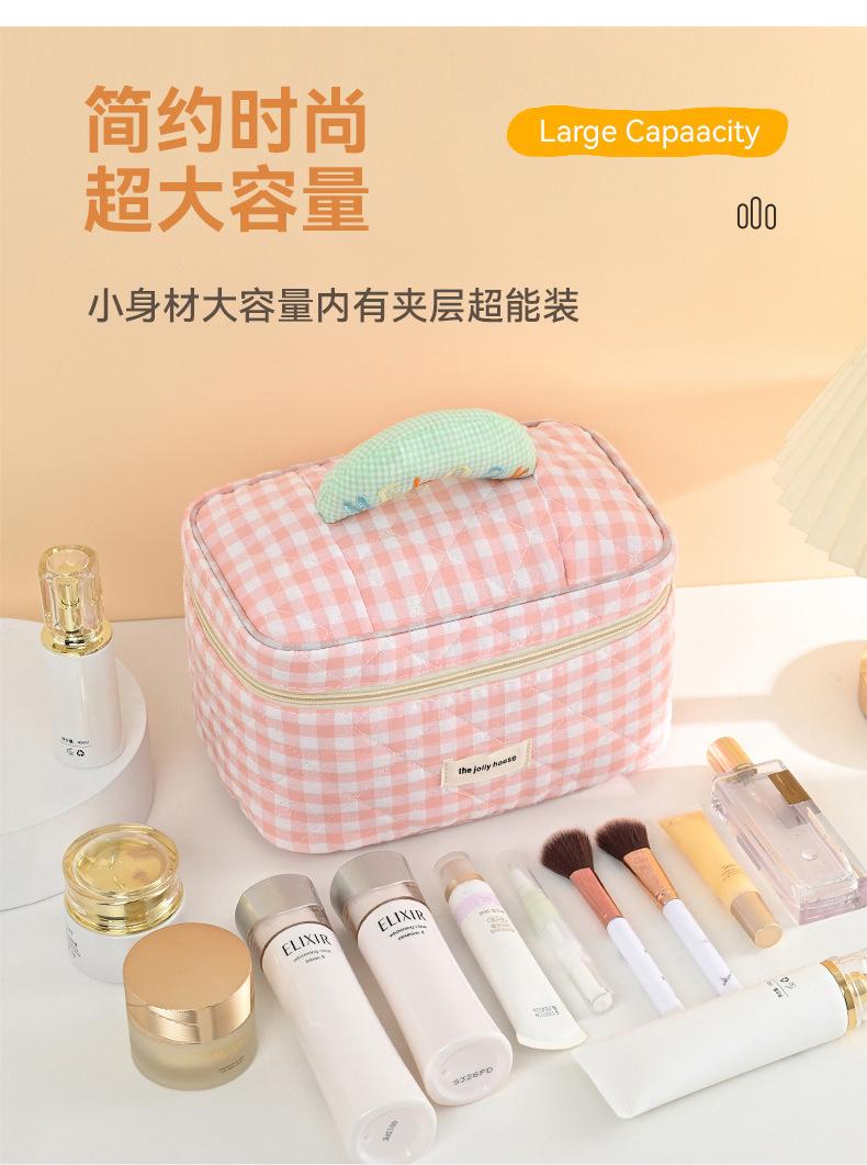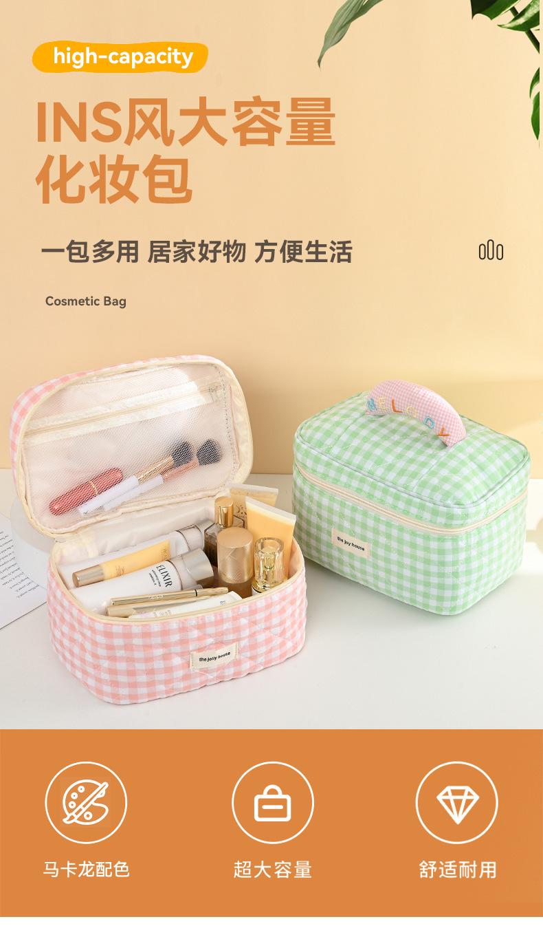Bolsa de cosméticos a cuadros coreana para mujer, bolsa de almacenamiento portátil de gran capacidad, bolso de mano de viaje para artículos de tocador, venta al por mayor
