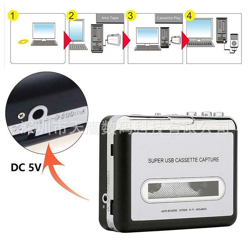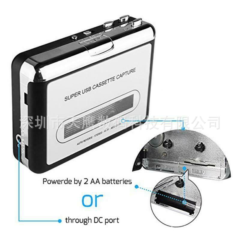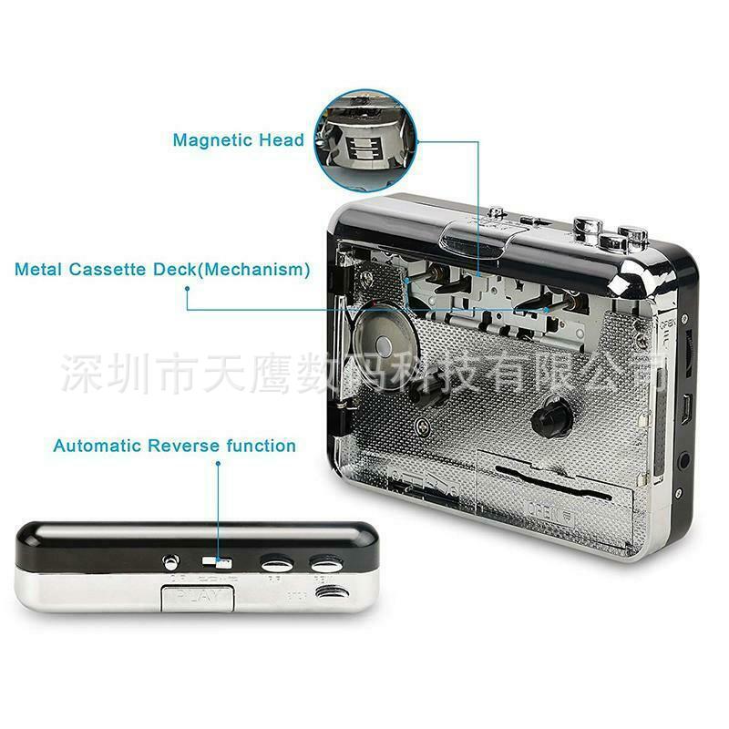 El convertidor de casete se puede usar como un walkman y también se puede conectar a una computadora a través de USB para convertir la cinta al formato MP3. Con una instalación sencilla, puedes convertir tus canciones favoritas de la cinta al formato MP3 y guardarlas en tu computadora, teléfono móvil, iPhone o IPAD.