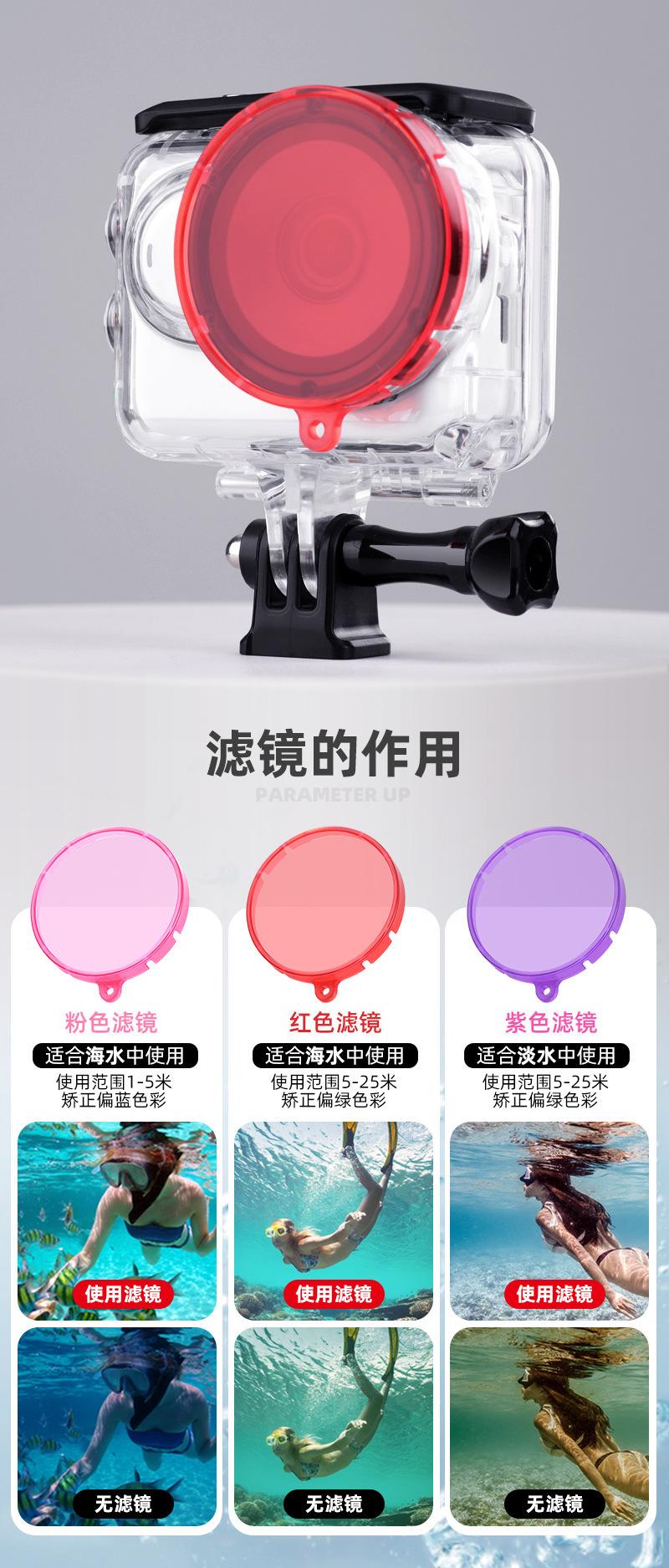 Aplicável: caixa à prova d'água Insta360 Go3 (o filtro é compatível com a caixa de mergulho oficial, mas a caixa à prova d'água da câmera principal não é aplicável)