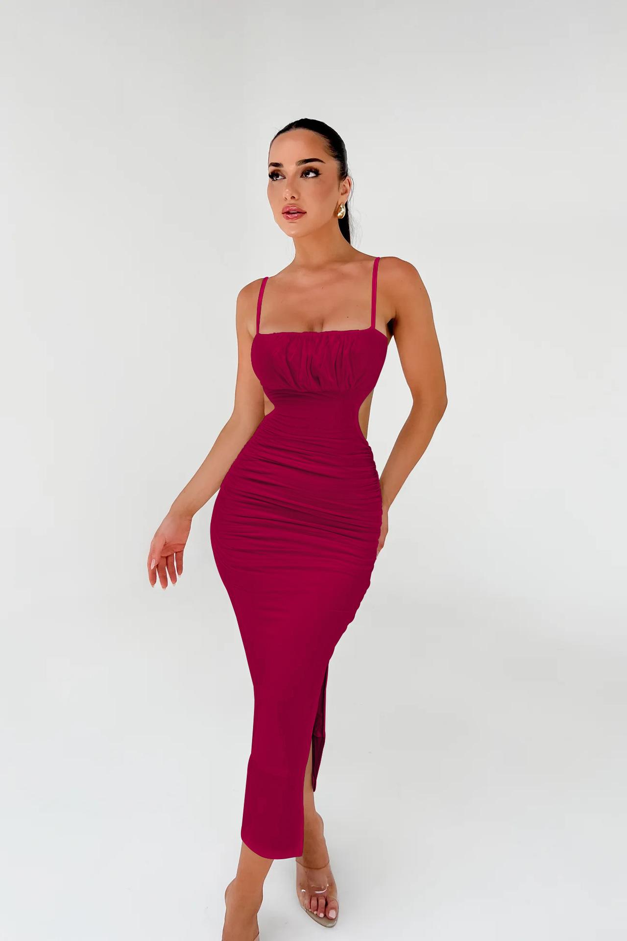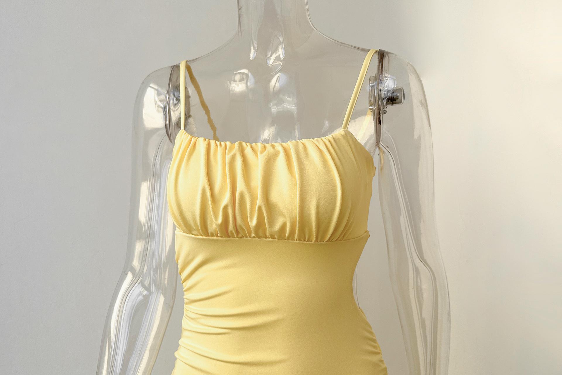 O design de pregas no peito e fendas laterais na saia é muito popular entre as meninas estrangeiras.