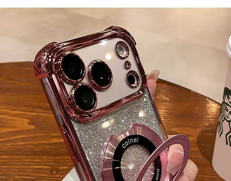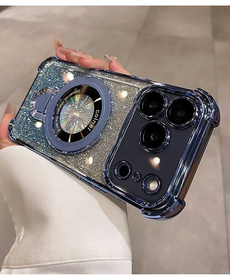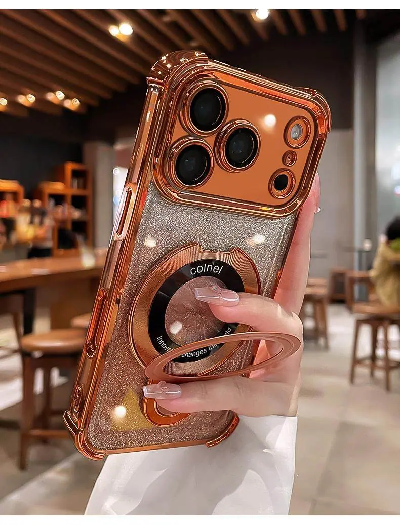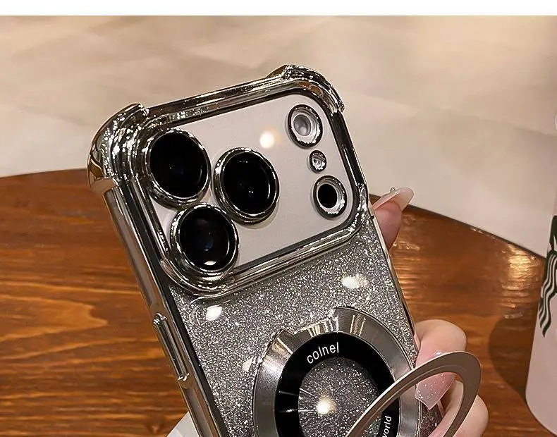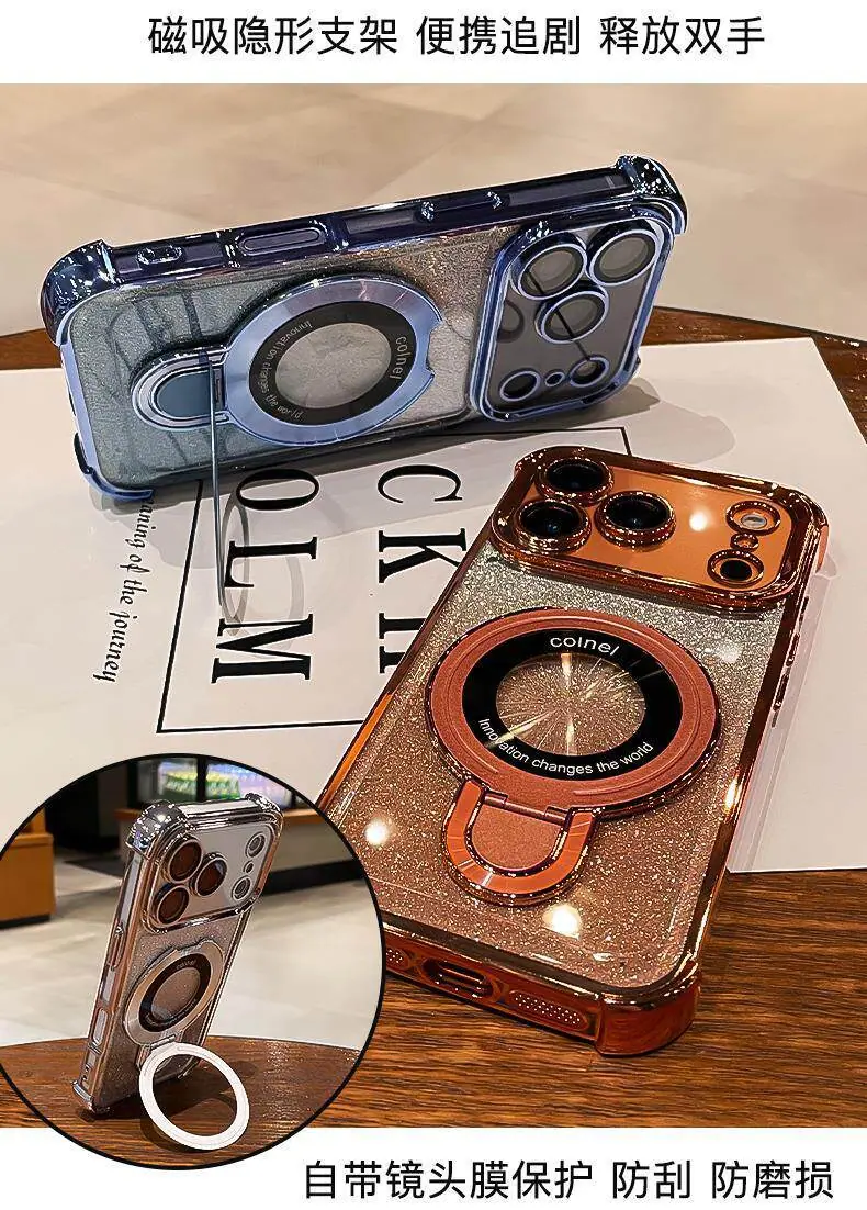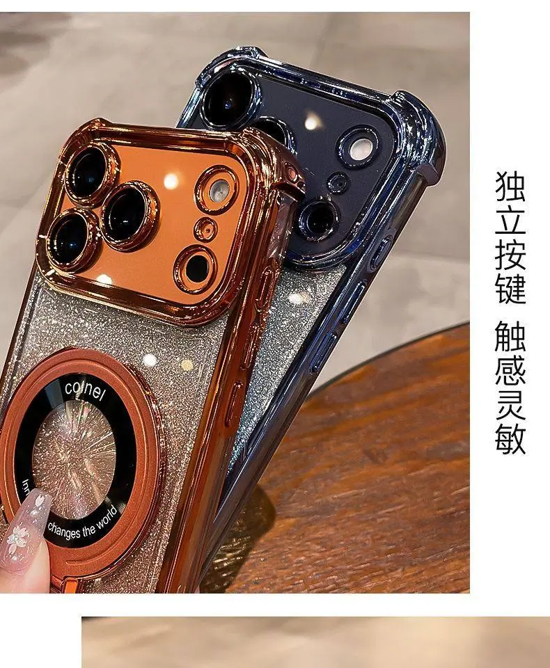 Capa de celular iPhone16 aplicável borda galvanizada diamante glitter gradiente Apple 14 novo 15Promax suporte magnético