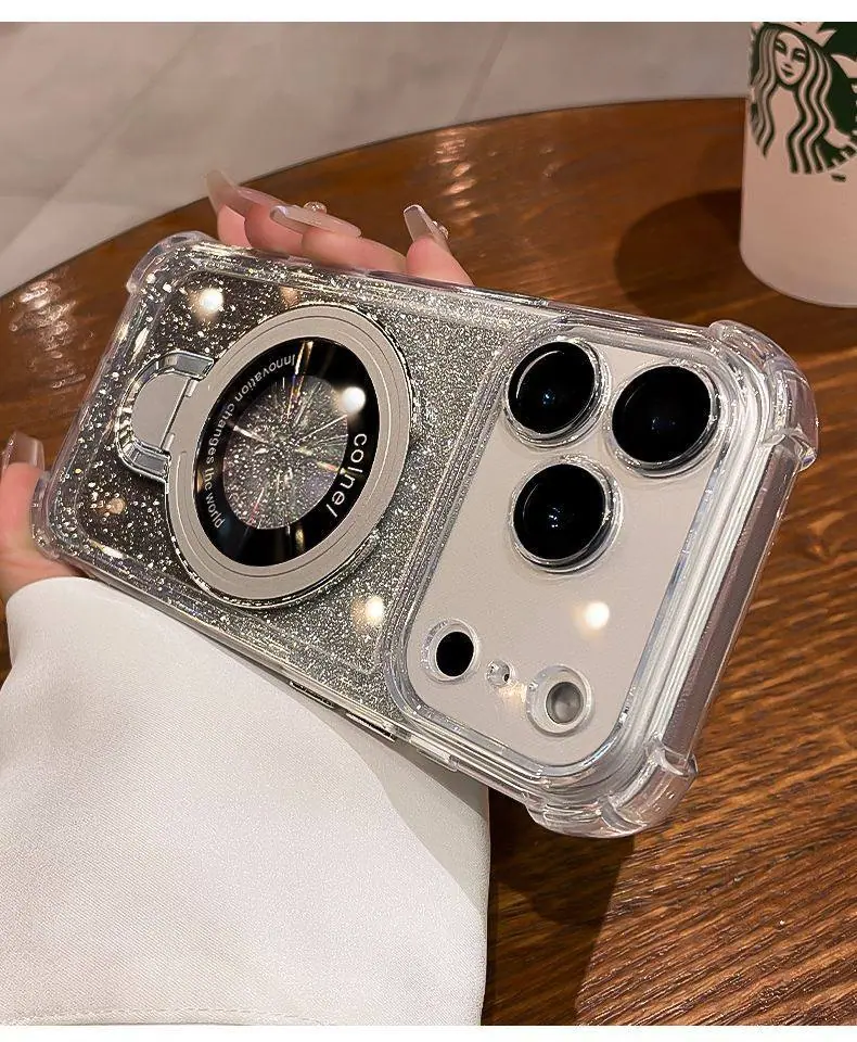 Capa de celular com glitter Apple 17 aplicável nova capa protetora para iPhone 16 espelho popular 15Promax high-end