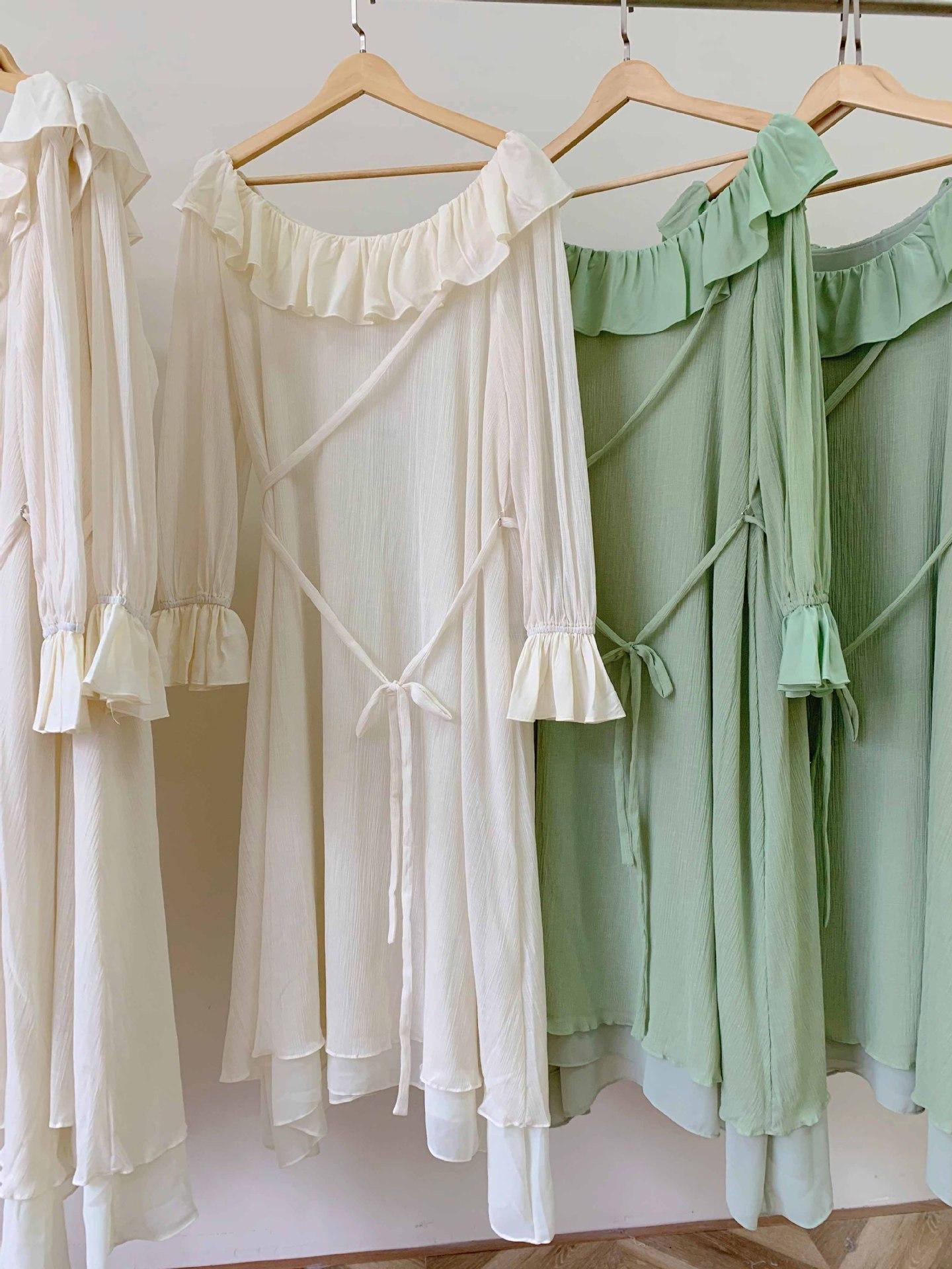 Os punhos ainda são mangas sino floridas, quem resiste a tamanha doçura?