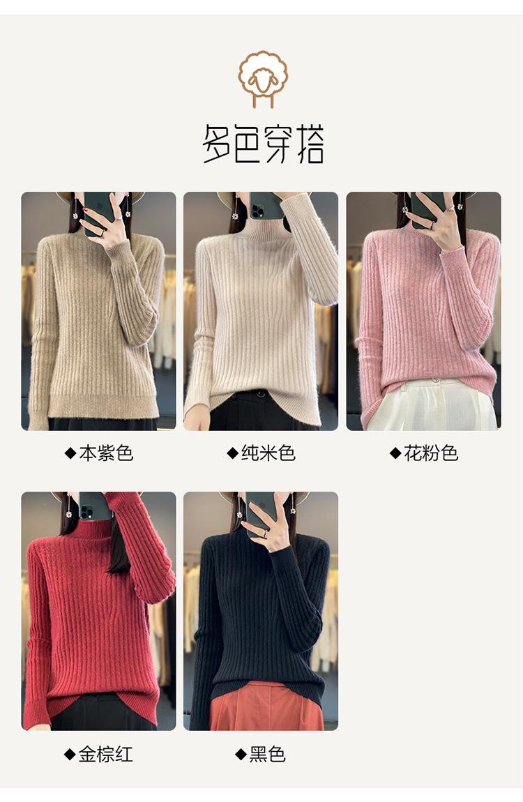 Compre 2023 outono e inverno Novo estilo coreano mulheres de lã pura meia gola rolê manga sólida cor listrada suéter de lã exterior das mulheres no atacado no Joom.pro