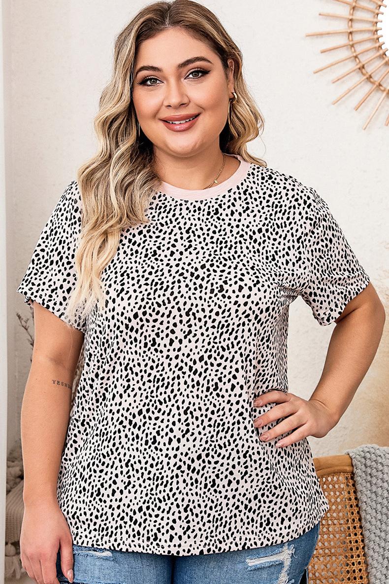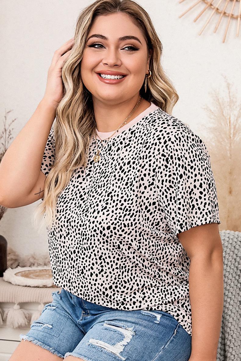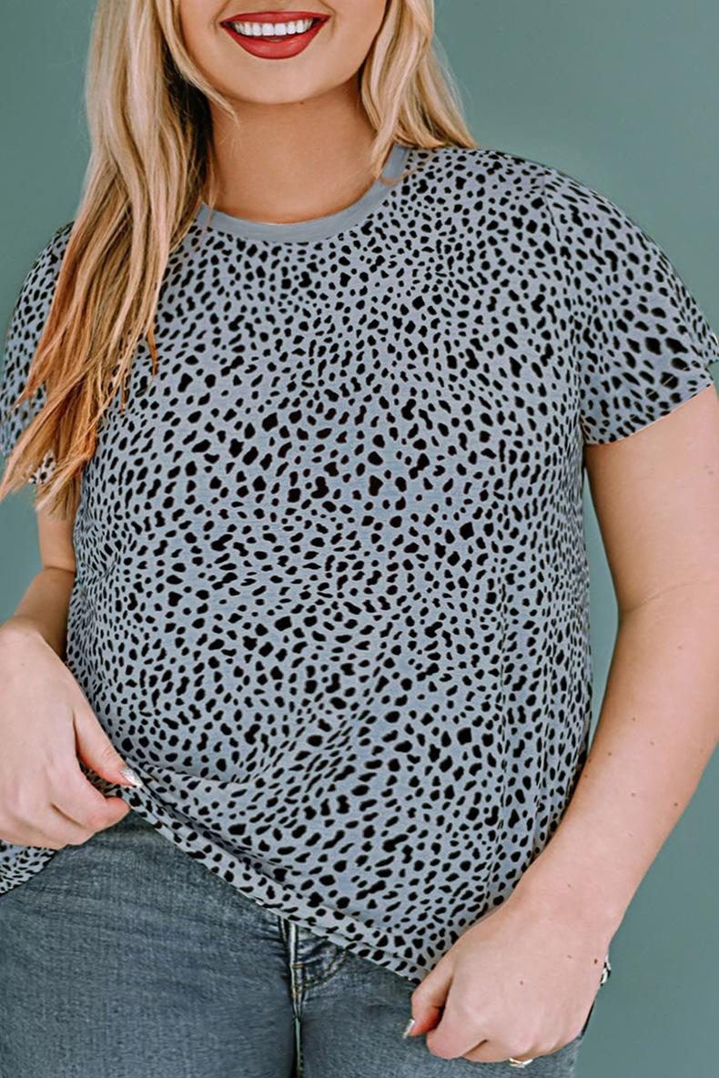 Shi Ying leopardo estampa contraste cor costura vestido Amazon cross-border manga curta fenda bainha saia longa 6113831