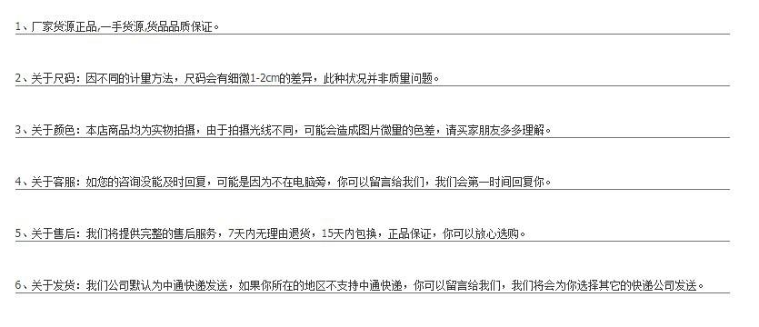 Todos os produtos da nossa loja são fotografados em espécie;Anúncio da loja Loja direta da fábrica, suporta personalização e lote misto; Enviamos às 16h todos os dias, e enviaremos no dia seguinte se o horário ultrapassar as 16h; Produtos personalizados, o ciclo de produção é de 3 a 15 dias úteis; Nossa loja tem como padrão STO Express. Se precisar de outra entrega expressa, entre em contato com o atendimento ao cliente para consulta. \\\\\\\\\\