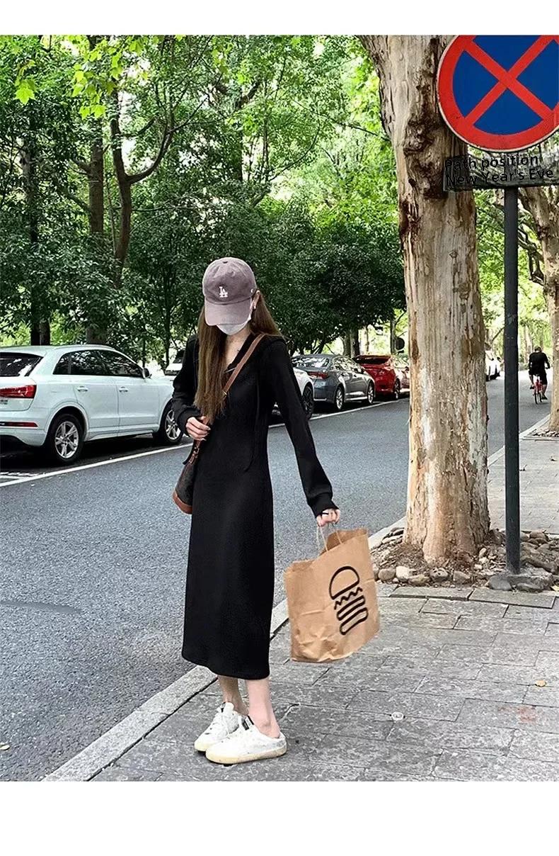 Compre Roupas de Início de Outono 2025 Novo Moletom com Capuz Branco Vestido de Manga Longa Feminino Petite High-End Saia Longa no atacado no Joom.pro
