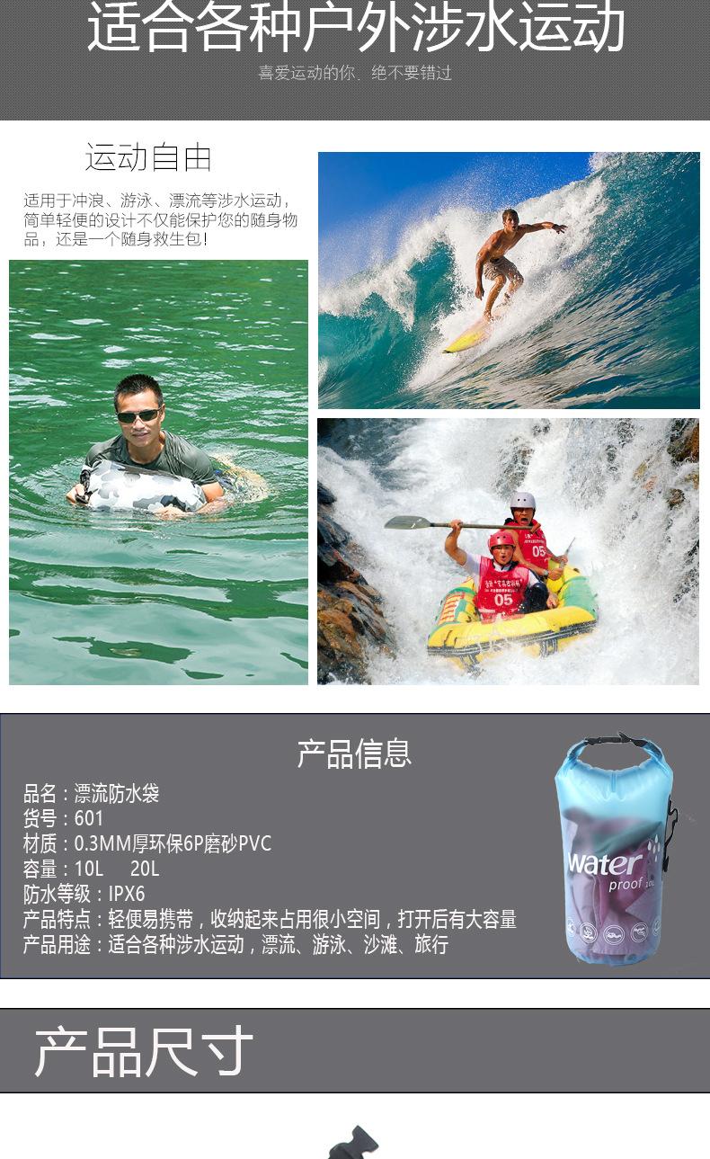 foi fundada em 2010 e está localizada em Yiwu, Zhejiang, o centro global de distribuição de pequenas mercadorias. A empresa produz principalmente produtos impermeáveis para exteriores e sacos de PVC para embalagens flexíveis. Os principais produtos incluem mochilas de montanhismo à prova d'água, sacos de balde à prova d'água para rafting, sacos à prova d'água para celular, sacos à prova d'água para câmera, sacos de aventura para espeleologia, baldes dobráveis, sacos à prova d'água, sacos à prova d'água de praia, sacos de banho ao ar livre, travesseiros infláveis, sacos de plástico de PVC, sacos de embalagem de PVC , sacos para embalagens de cosméticos, etc. A empresa possui mais de 30 máquinas de alta frequência de modelos de 2,8KW, 5KW, 8KW e 12KW, bem como equipamentos de costura, como tornos altos, tornos planos, tornos síncronos e máquinas de alinhavo. Desde a sua criação, a empresa sempre aderiu à filosofia empresarial de que a qualidade do produto é a vida da empresa. Controlou rigorosamente a aquisição de matérias-primas desde o início e as adquiriu em estrita conformidade com as necessidades do cliente. Acumulou continuamente uma rica experiência de produção, introduziu tecnologia de produção avançada e equipamentos de produção e fortaleceu a gestão interna da empresa, produtos e serviços de alta qualidade atendem perfeitamente às necessidades dos comerciantes nacionais e estrangeiros. Os produtos da empresa são exportados para Japão, Estados Unidos, Alemanha, Malásia, Nova Zelândia, Filipinas e outros países, e tem cooperação de longo prazo com muitas das principais marcas internacionais.