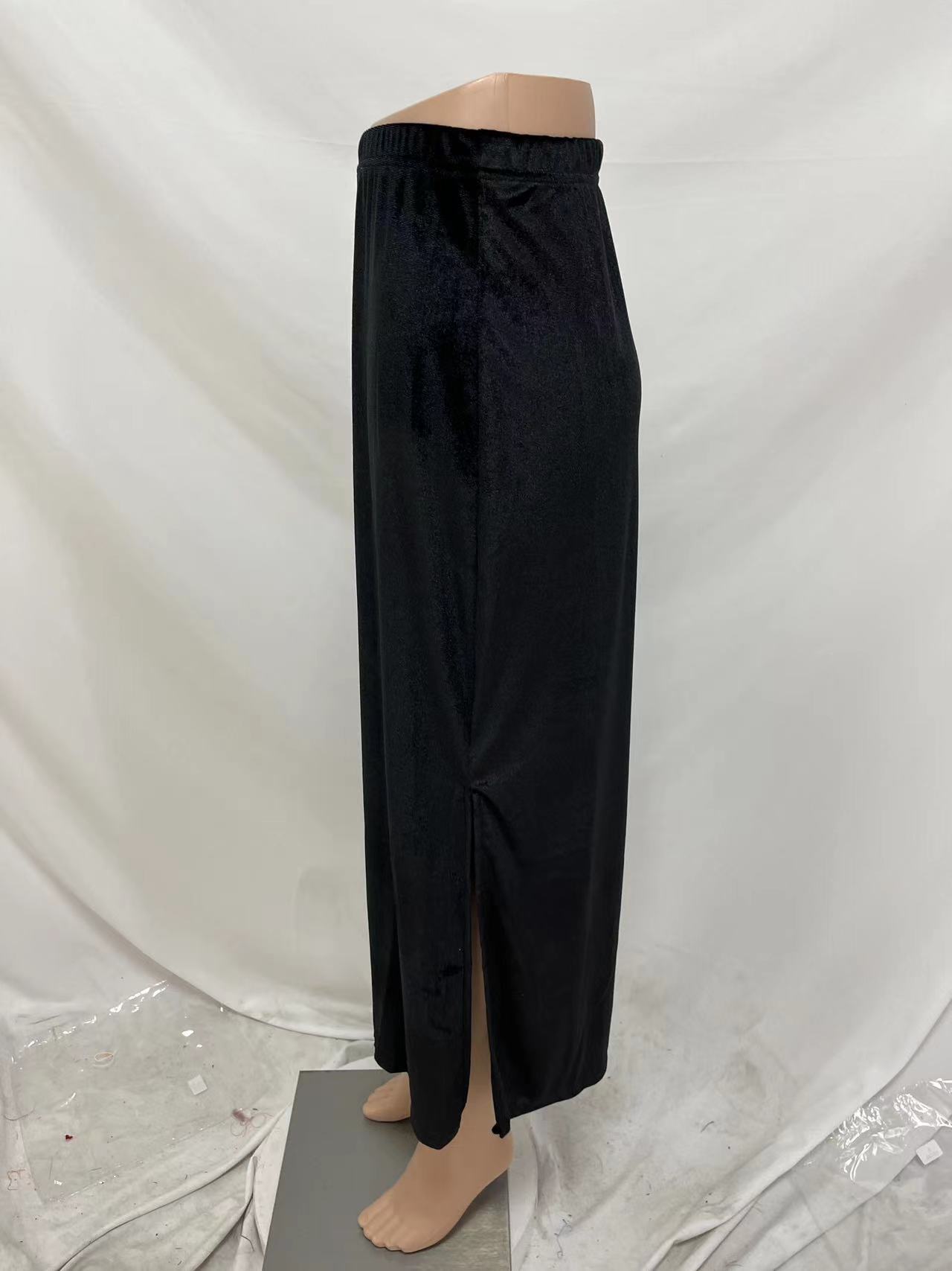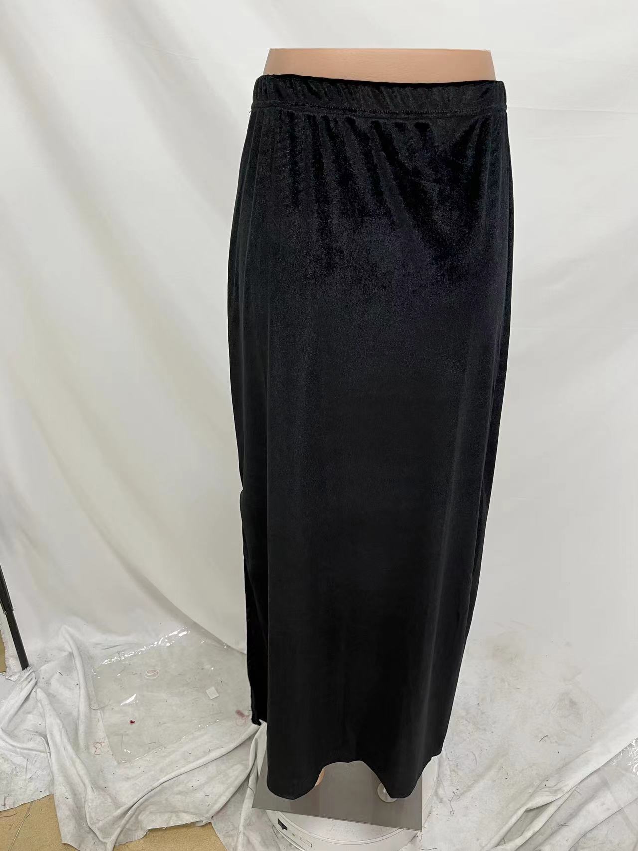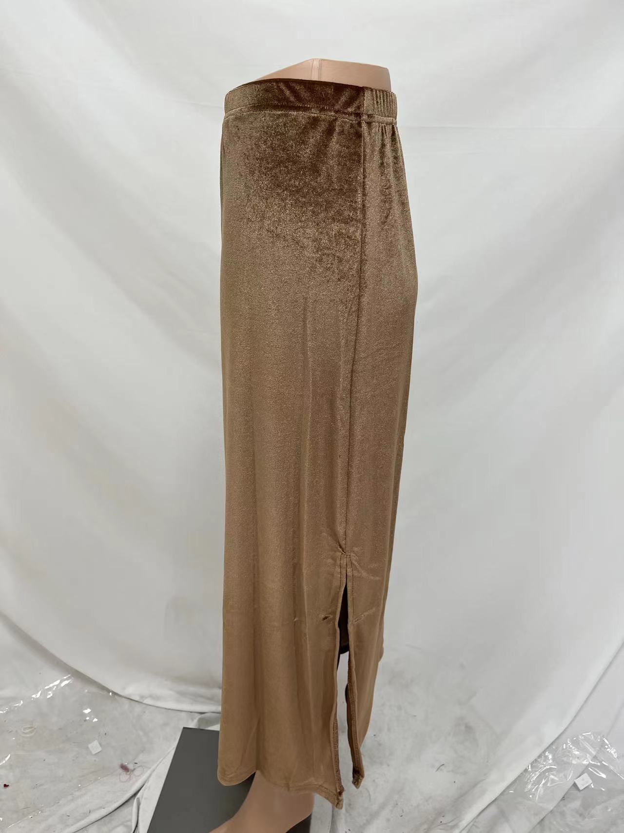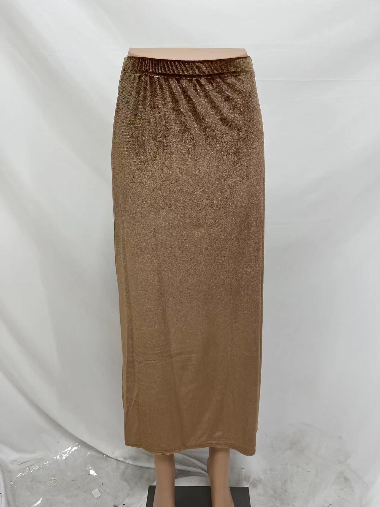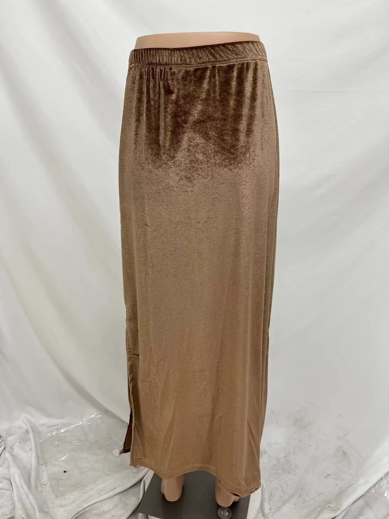 2024 outono nova saia feminina europeia e americana cor sólida amazon comércio exterior cross-border hip saia fenda saia longa