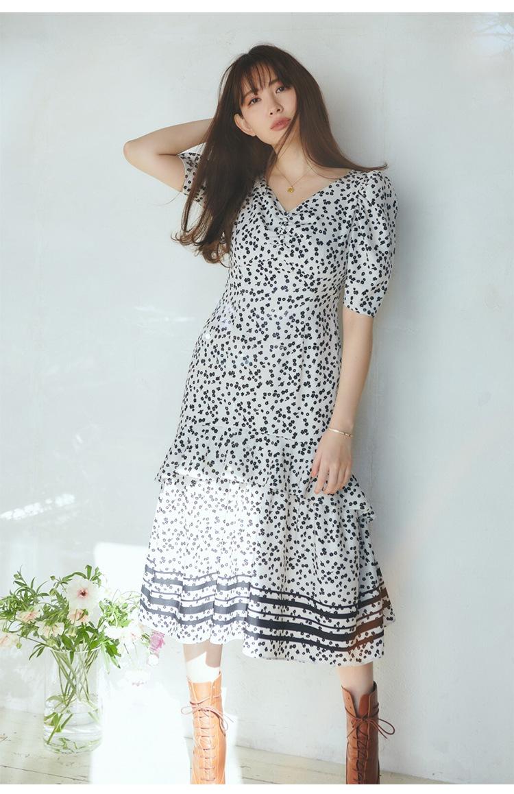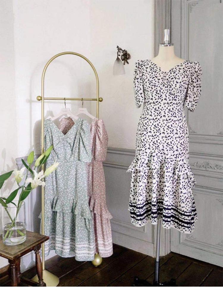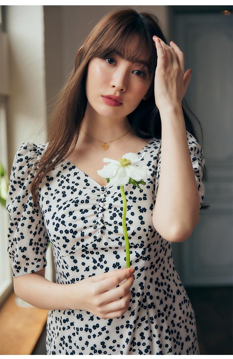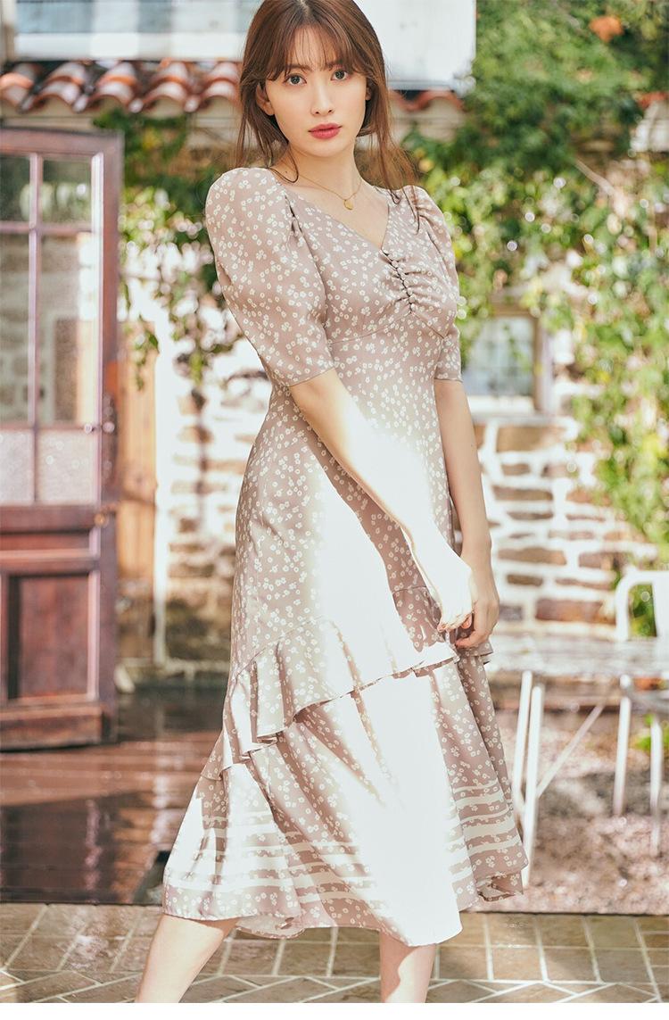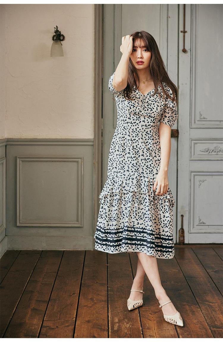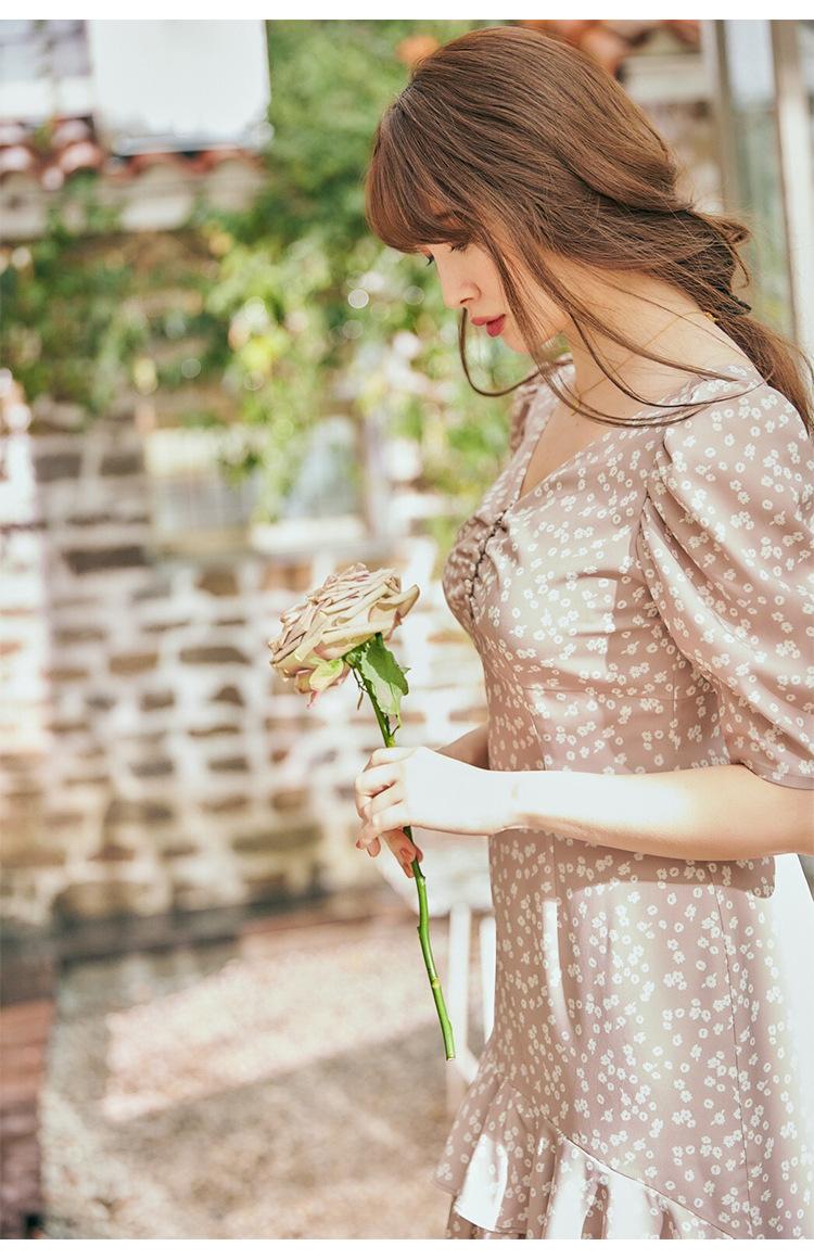 O vestido da imperatriz dela é muito fofo, um vestido floral romântico