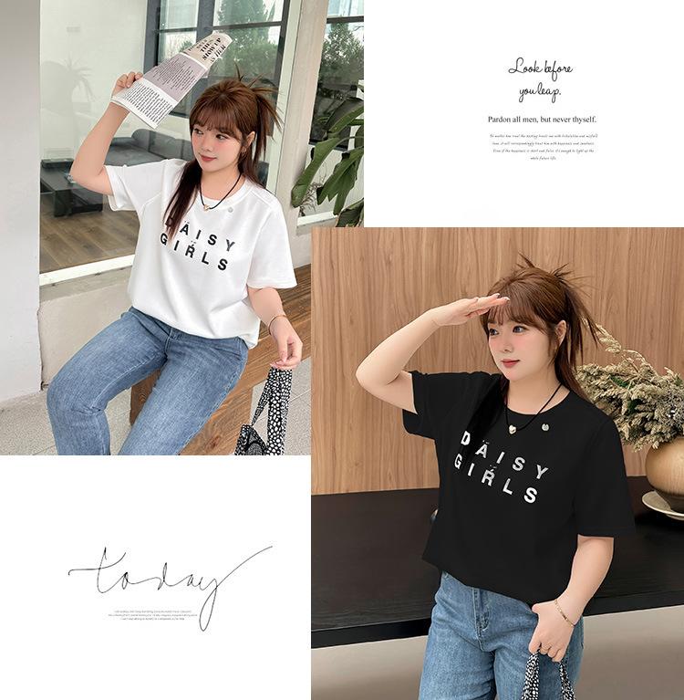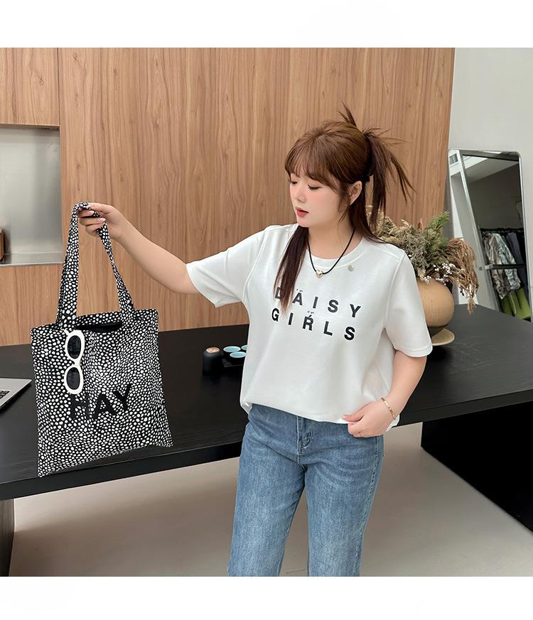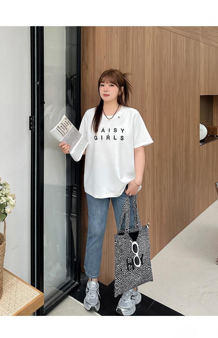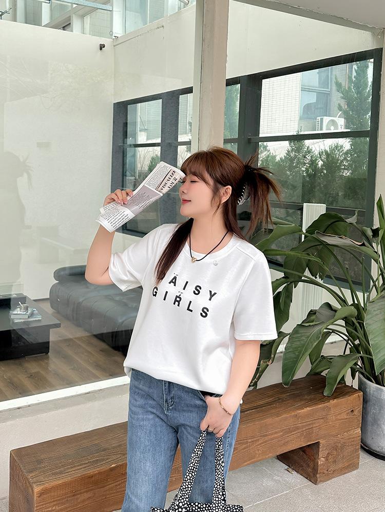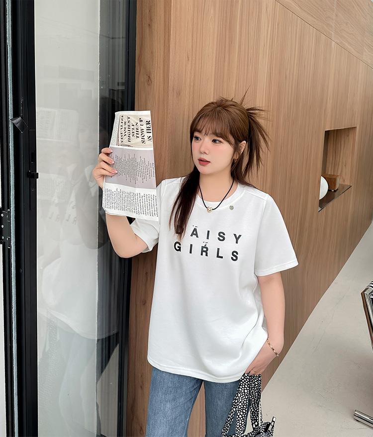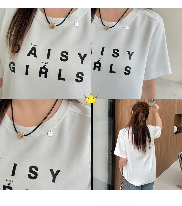 Camiseta clássica de manga curta com estampa de letras e gola redonda