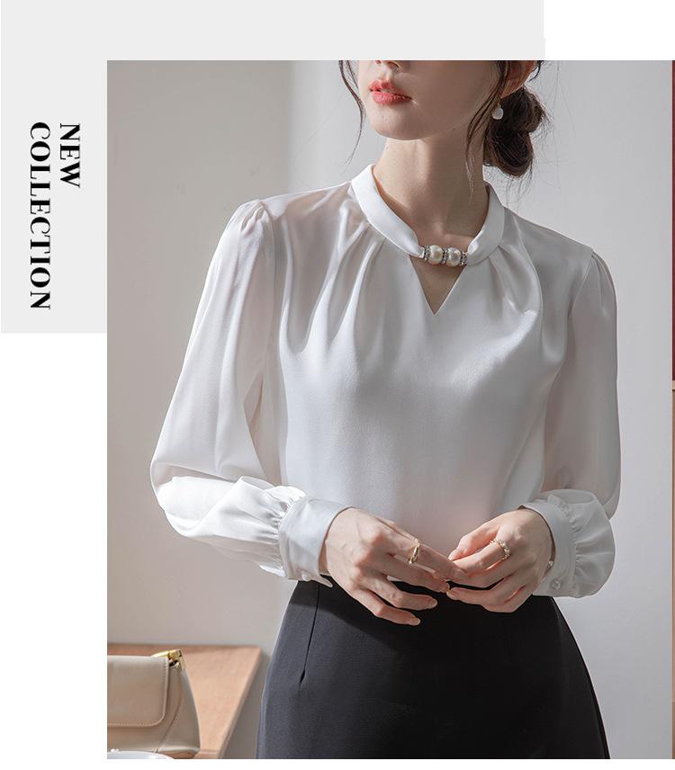 Compre Camisa de Nicho Francês Halter Gola Alta com Miçangas para Mulheres 2025 Primavera Nova Pulôver Cetim Elegante Top para Trabalho no atacado no Joom.pro