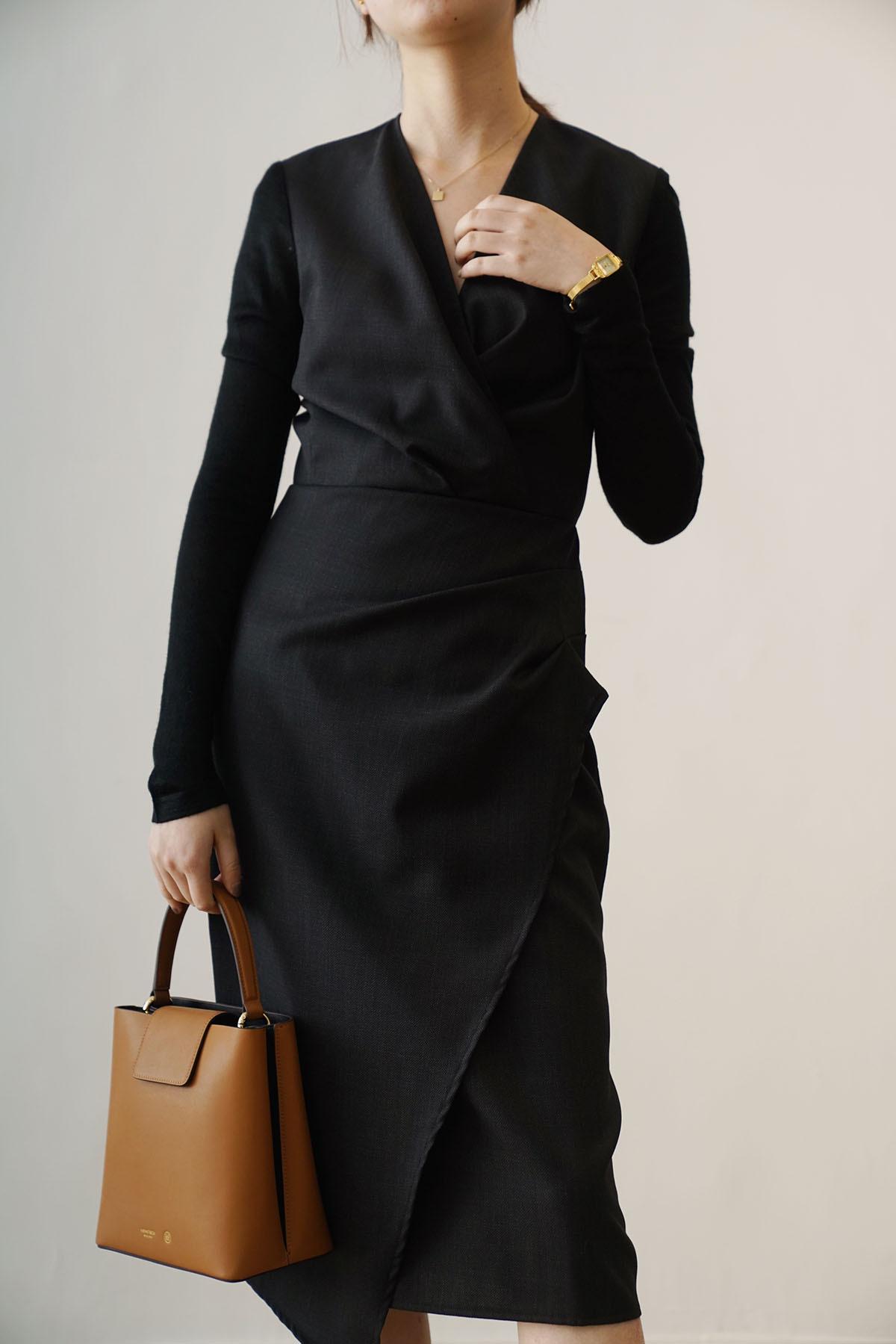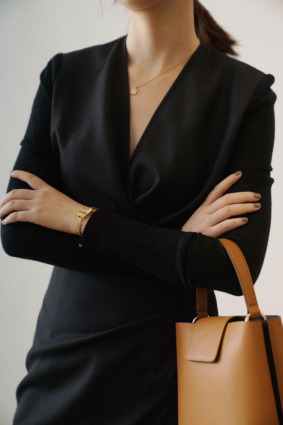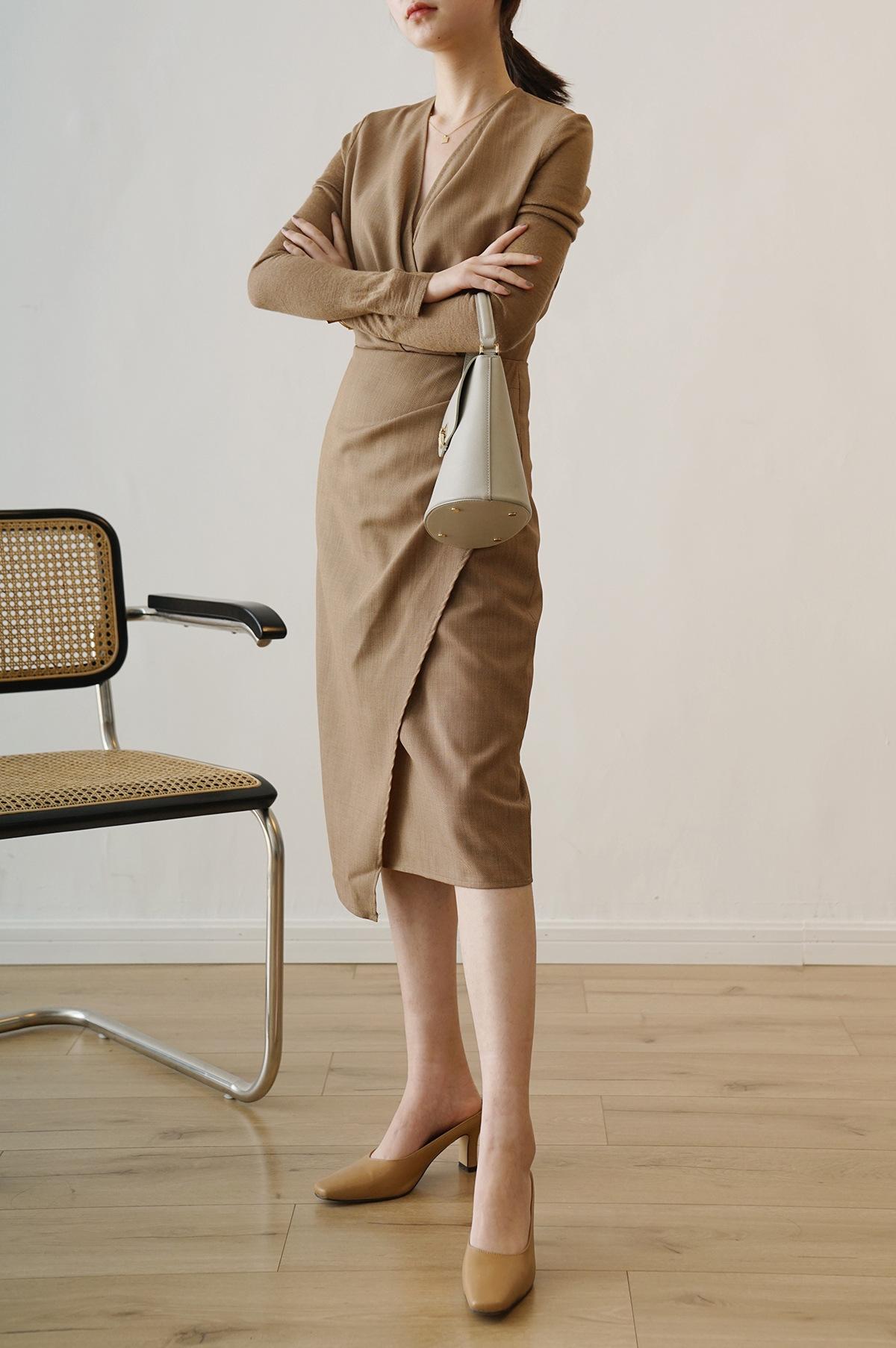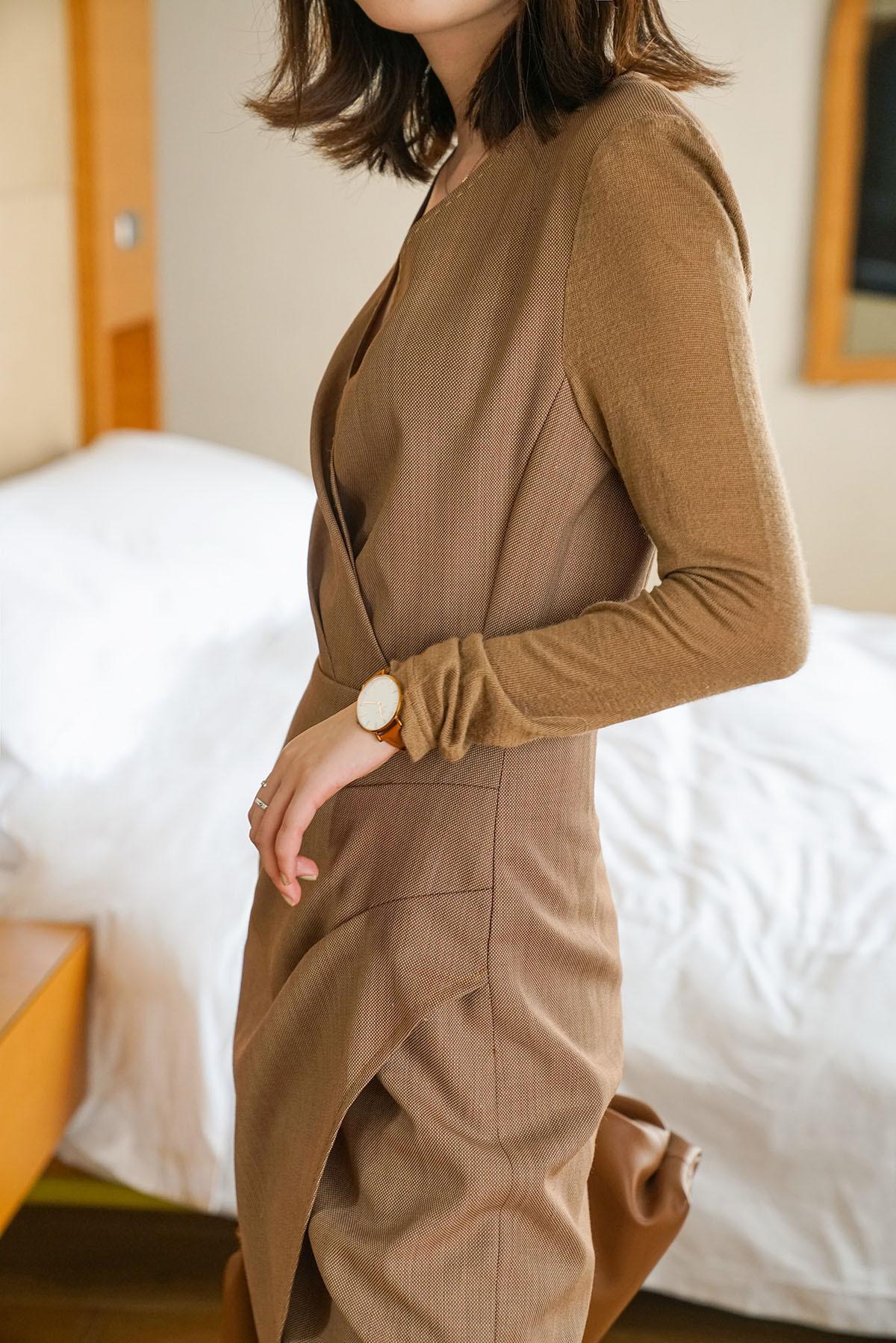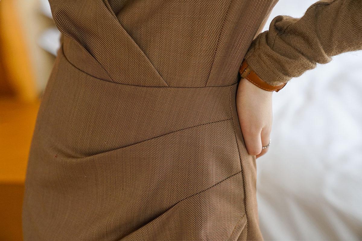 Um decote em V cruzado semelhante a um decote envolvente que alonga o pescoço