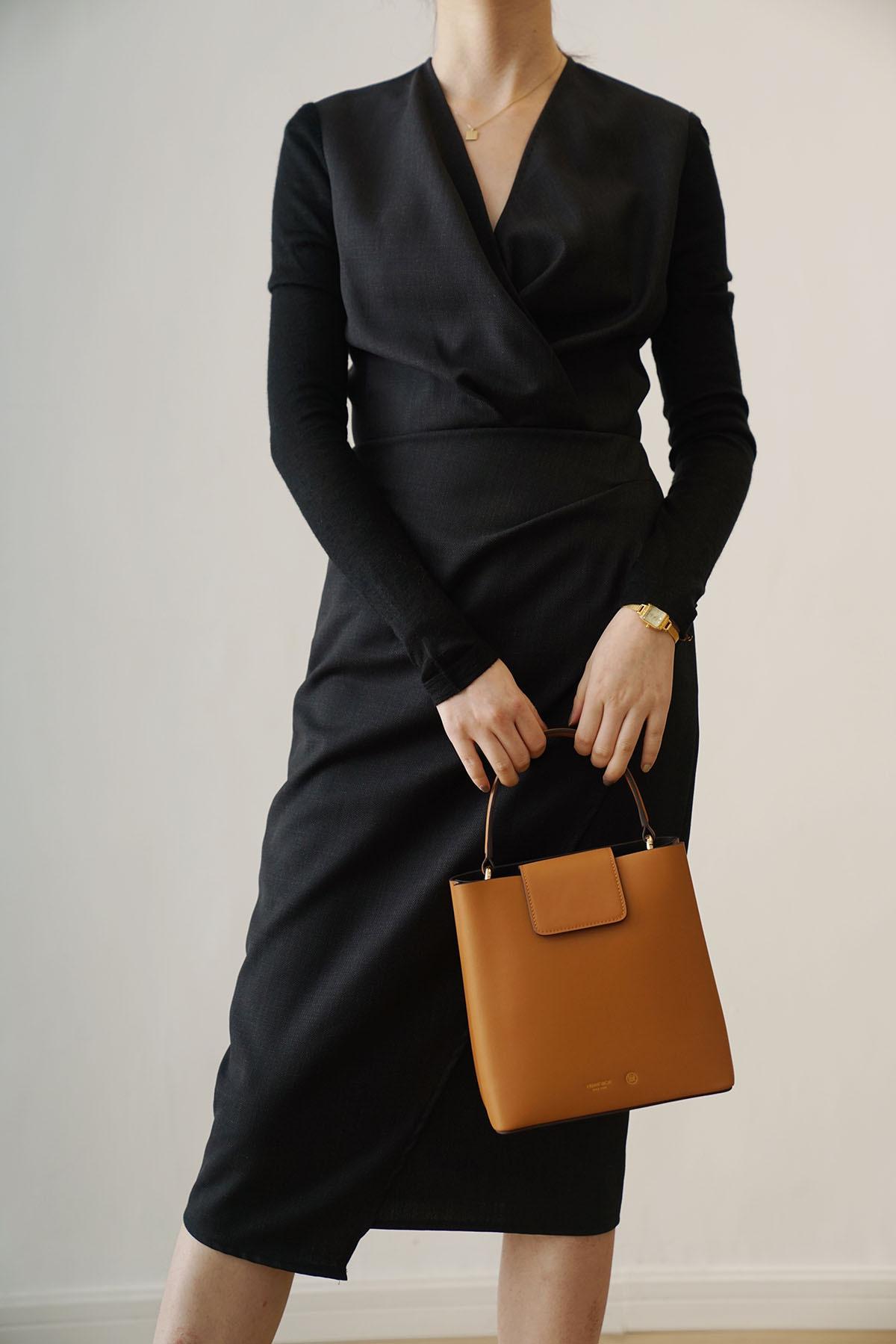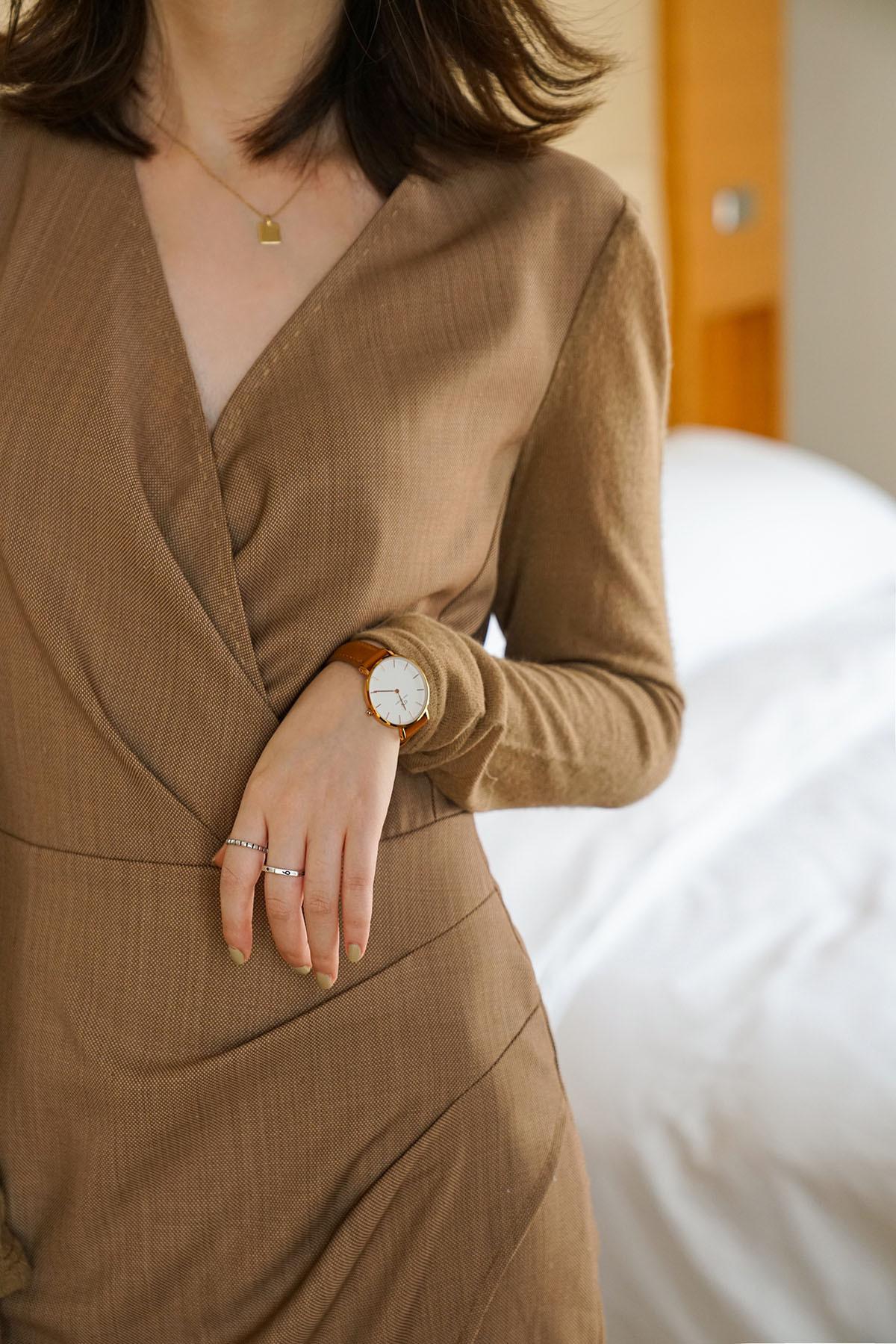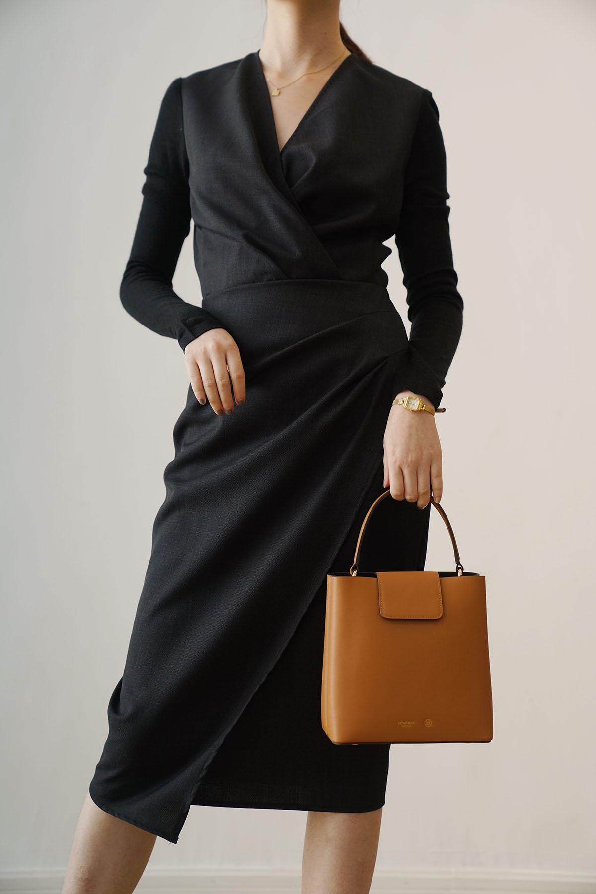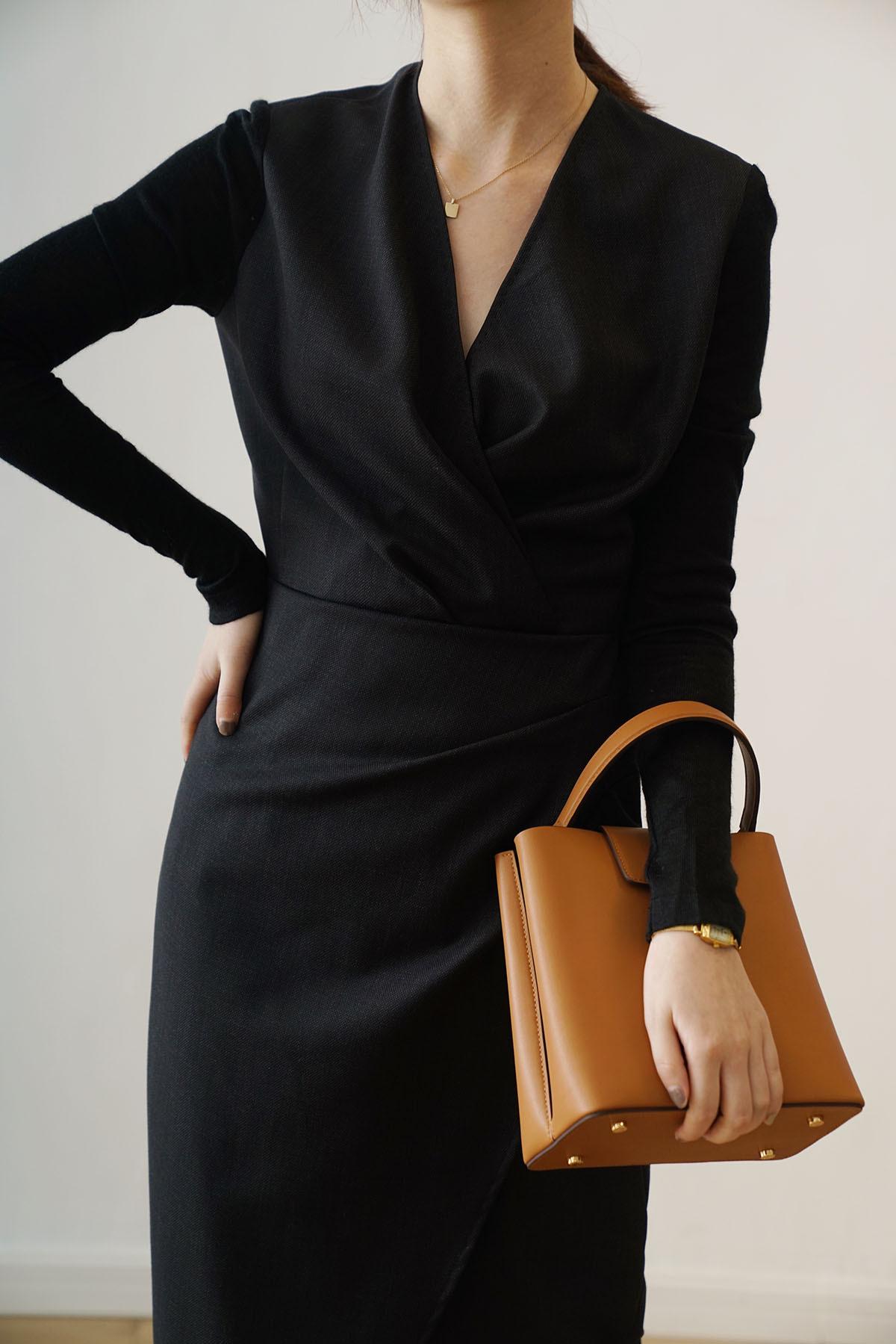 Um decote em V cruzado semelhante a um decote envolvente que alonga o pescoço