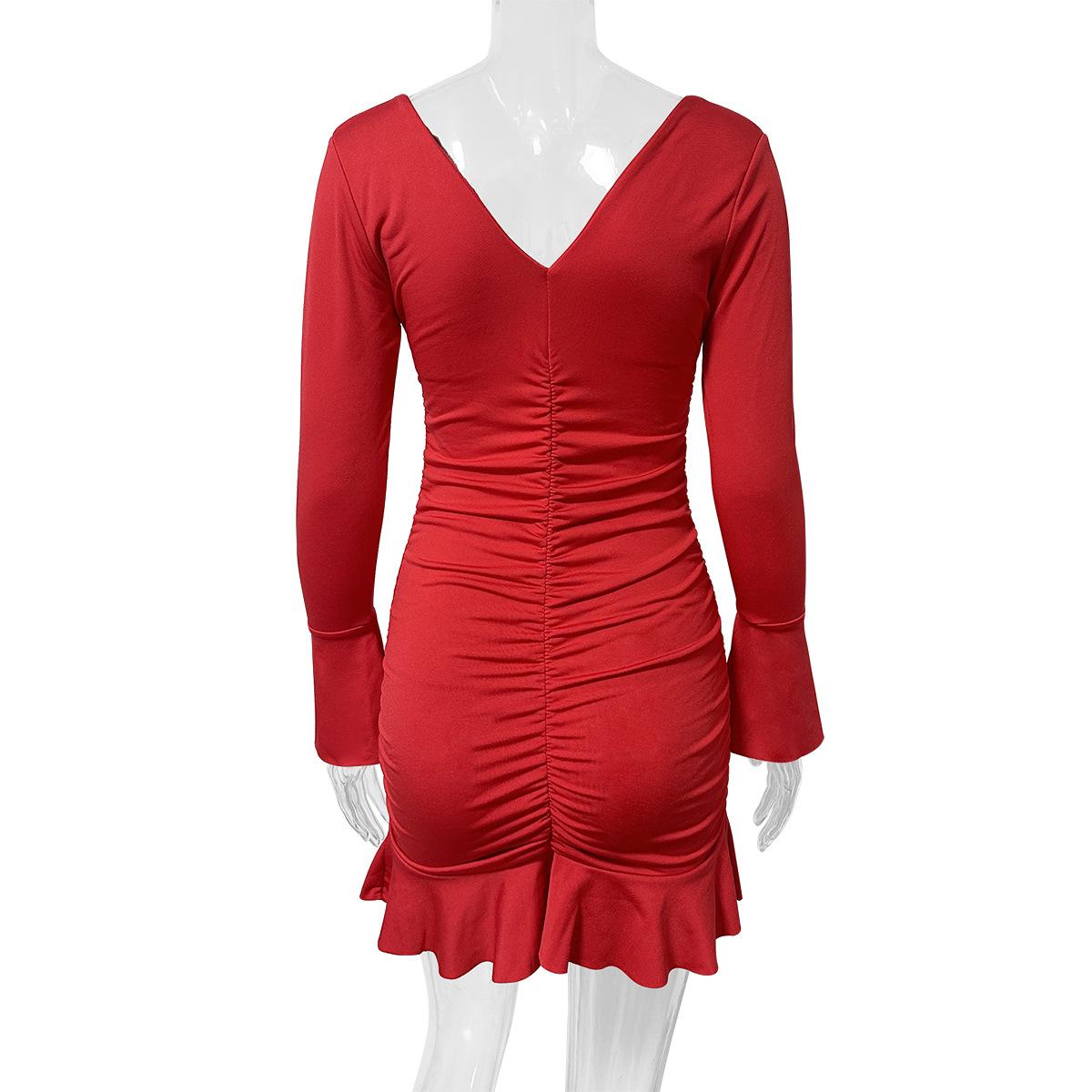2024 vestido transfronteiriço de outono e inverno de mangas compridas envolto no quadril;