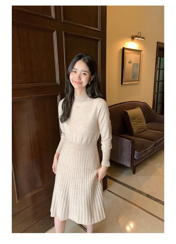 Compre Saia de caxemira feminina elegante e suave meia gola tartaruga cor sólida manga comprida outono e inverno Novo pullover vestido de comprimento médio no atacado no Joom.pro