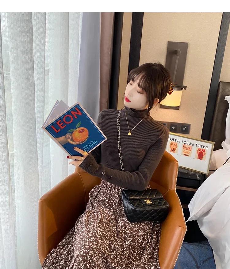 Base Camisa Feminina Malha Outono e Inverno Novo Slim-fit Casual Pile Collar Top Feminino com Botão de Manga Longa da Menina