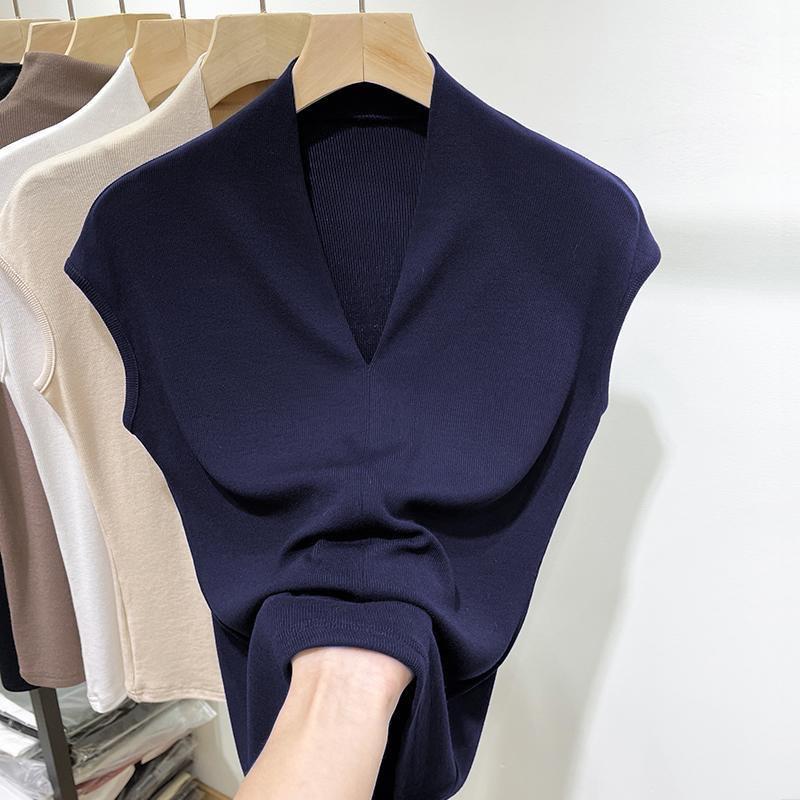 Super Soft Knitted Versão High-end Sense V-neck camiseta de manga curta Verão Feminino Novo estilo coreano roupas femininas Inner Tight Top para Mulheres