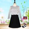 Mamão Leite Primavera e Outono New Wave Dot Vestido de manga comprida estilo coreano elegante cintura apertada costura emagrecedora falso duas peças elegante