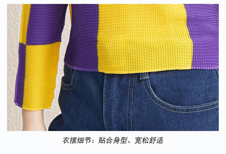 Primavera y Otoño 2025 Estilo Japonés Elástico Manga Larga Camiseta Base para Mujer Nueva Slim Estampada a Cuadros Plisada Cuello Medio Tortuga