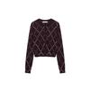 Suéter Retrô Preguiçoso Macio Encerado de Primavera e Outono Feminino Design Coreano Cor de Contraste Gola Redonda Manga Longa Tricotado Aberto