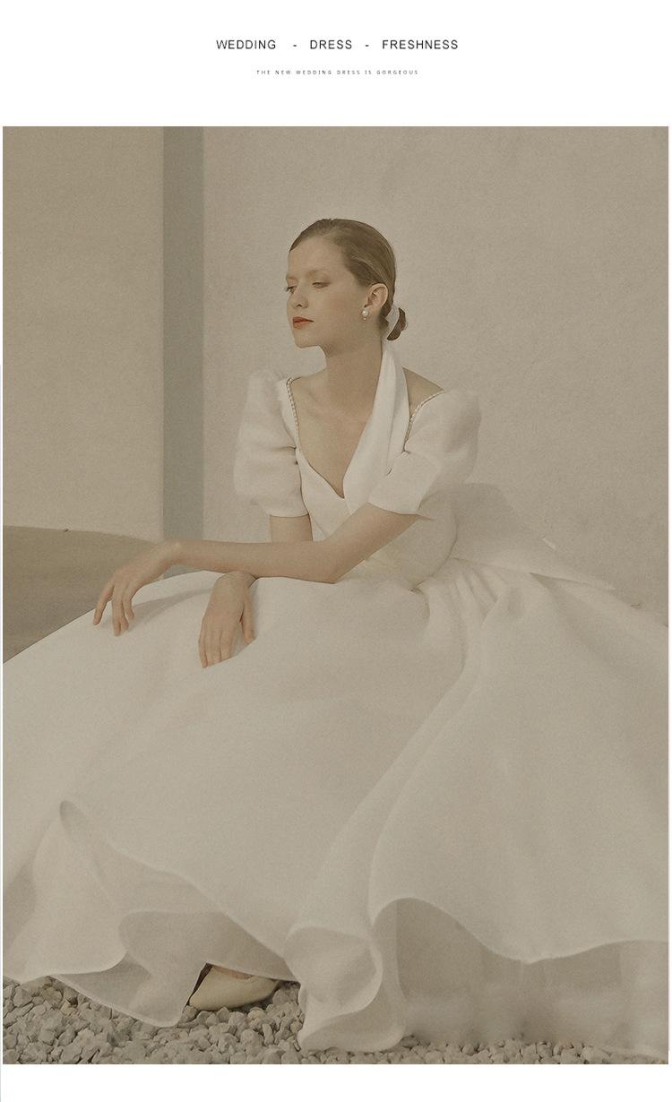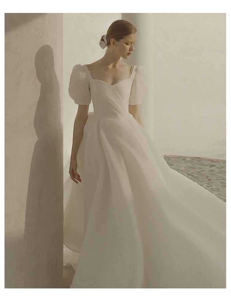 Vestido de noiva leve francês pequeno vestido 2021 novo estilo super floresta de fadas branco simples noiva casamento registro acompanhamento vestido