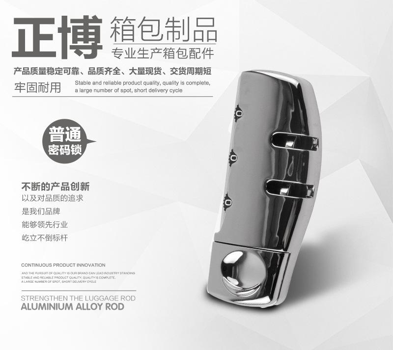 Guangzhou Zhengbo Luggage Products Co., Ltd. se especializa en la producción de una serie de accesorios para equipaje, como cerraduras de combinación, candados, cerraduras fijas, cerraduras aduaneras TSA, carritos, ruedas para maletas, ruedas para maletas y asas. Nuestros productos son populares en el mercado y gozan de gran prestigio. La empresa ha establecido relaciones de cooperación duraderas y estables con importantes fabricantes y agentes de equipaje. Ofrece una gama completa de productos a precios razonables. Con una sólida trayectoria comercial, valoramos la credibilidad, cumplimos los contratos y garantizamos la calidad de nuestros productos. Nos hemos ganado la confianza de nuestros clientes gracias a nuestra amplia gama de productos y al principio de bajos beneficios y rápida rotación.