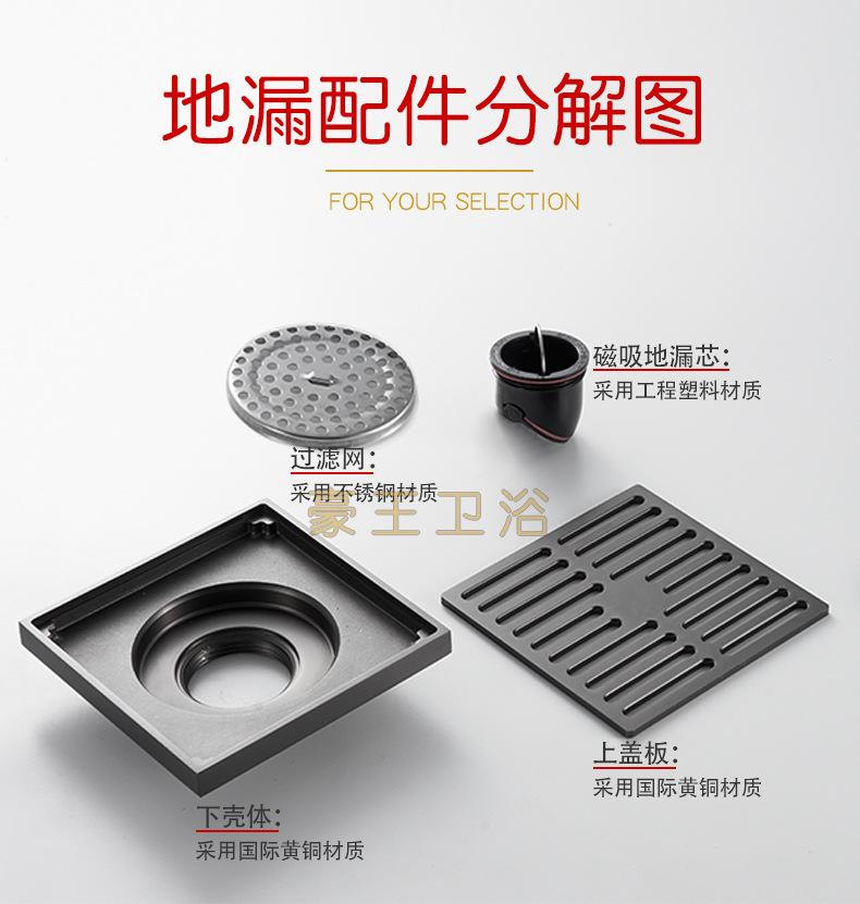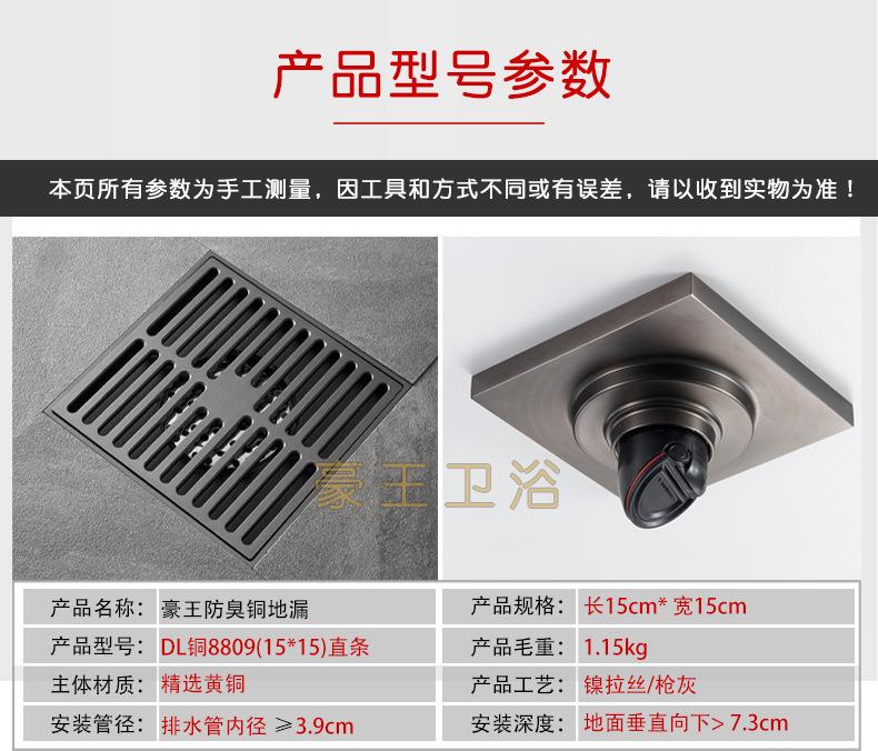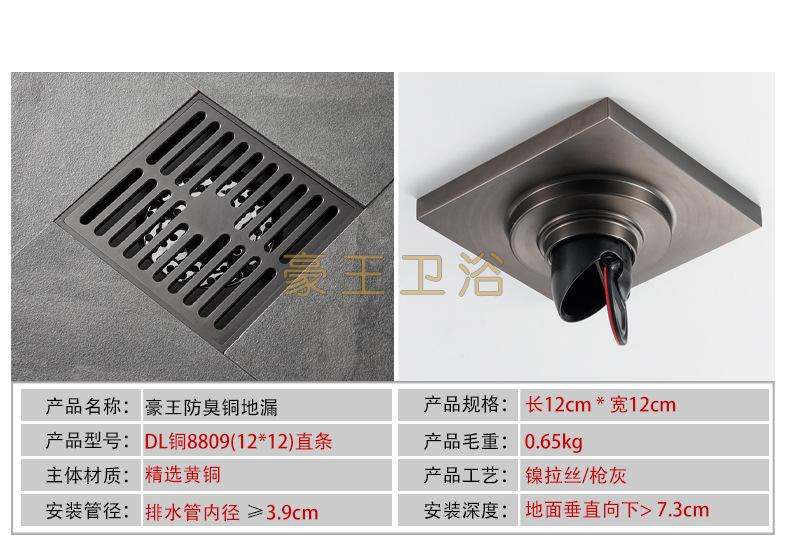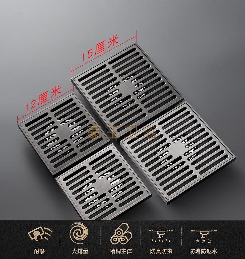 Ralo de piso totalmente à prova de odores de cobre: 12*12 cm,15*15cmTamanho quadrado grande