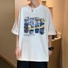 Starry Moon Night Loose Cotton American Camiseta de manga curta masculina verão 2024 Nova camiseta Hong Kong Moda Marca Roupas masculinas T