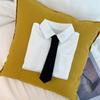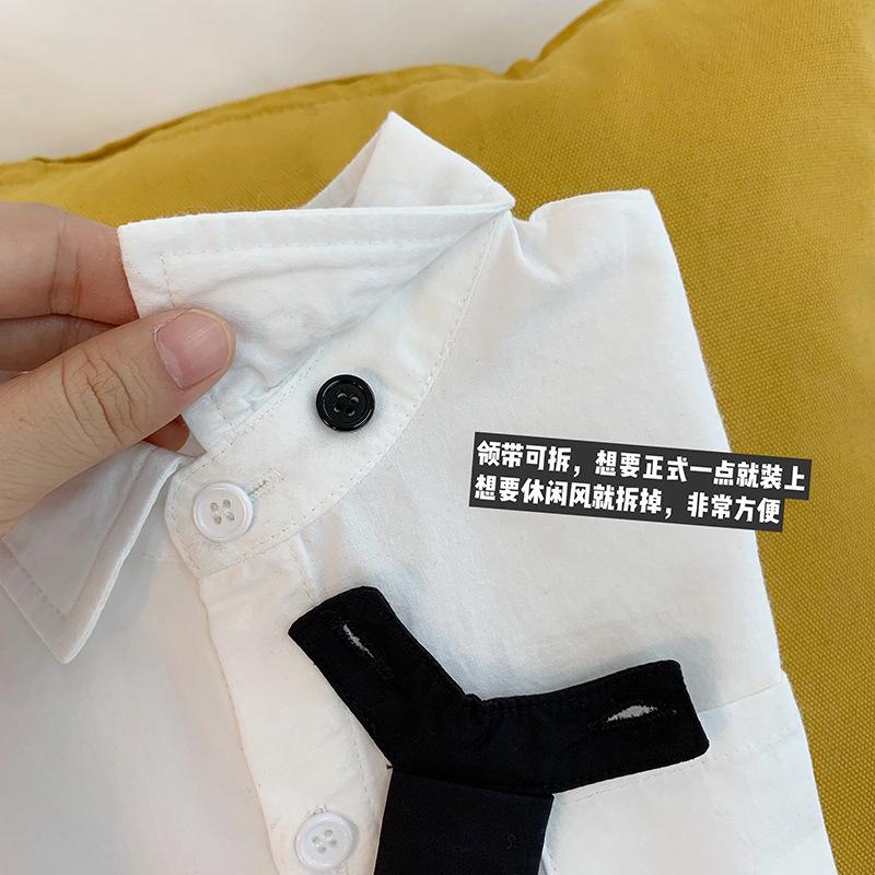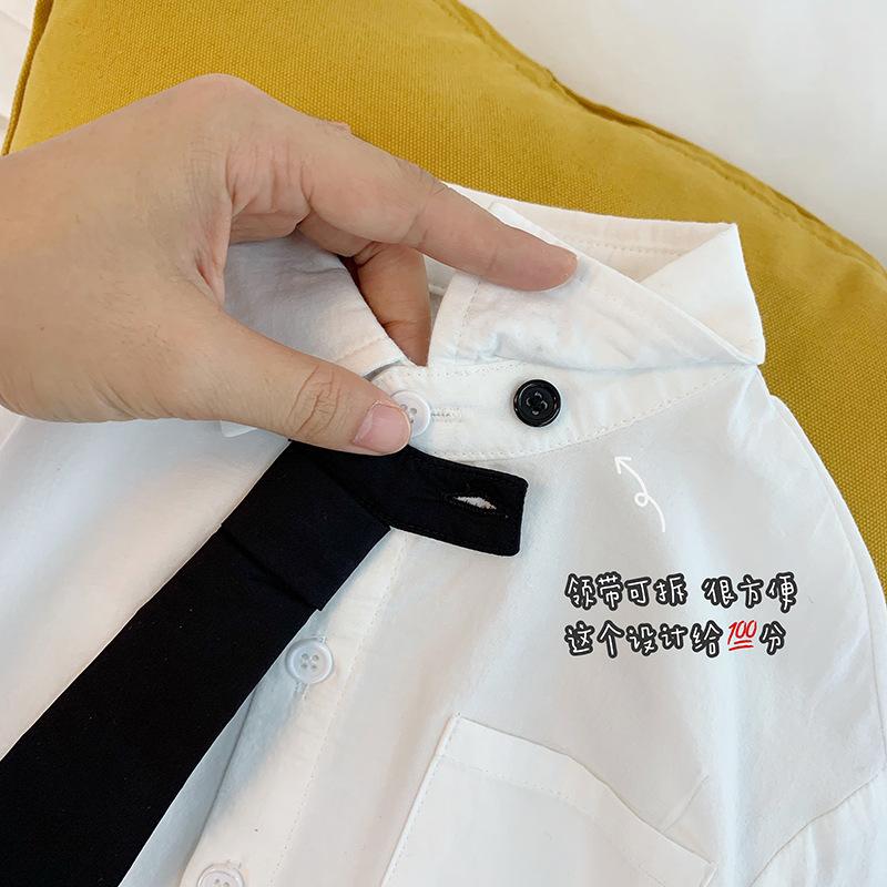 A gravata é solta e pode ser destacada.