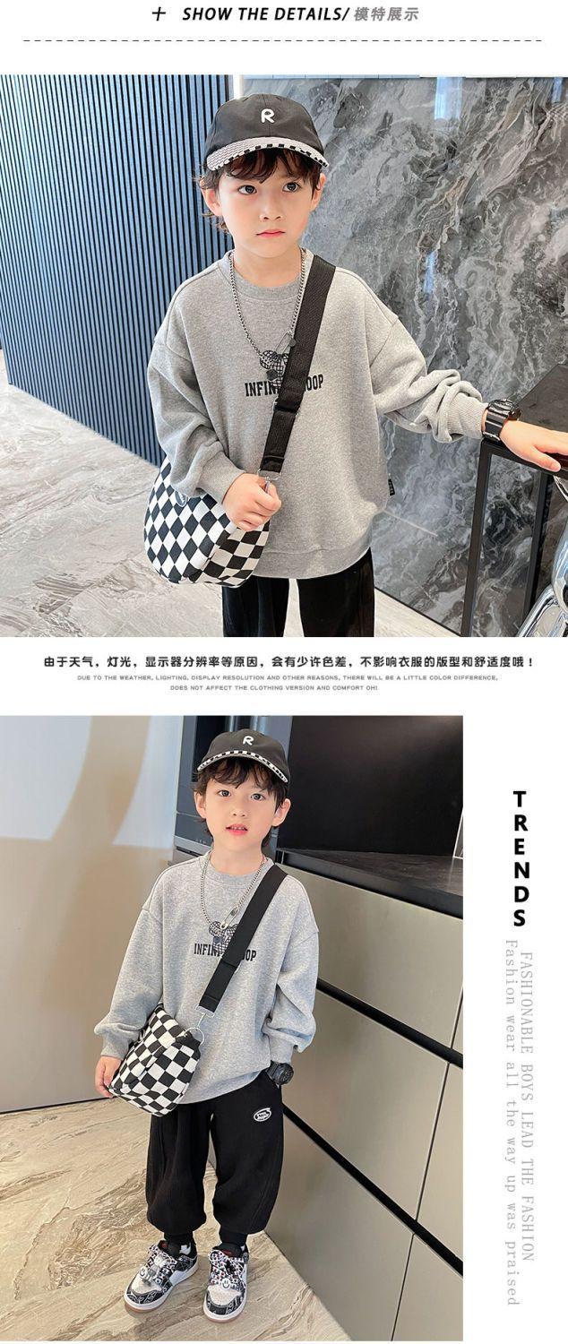 Moletom para Meninos Outono 2024 Novo Estilo Infantil Estilo Ocidental Frito Rua Gola Redonda Solto Meninos Primavera e Outono Top Na Moda