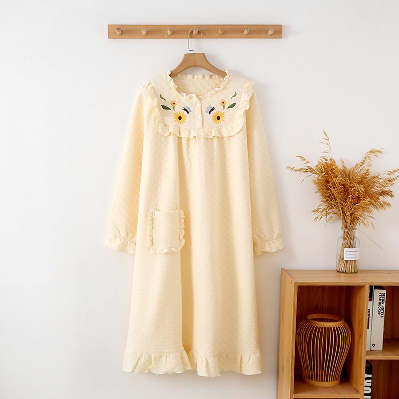 Compre Vestido de Noite Feminino 2023 Novo Outono e Inverno Bordado Renda Air Cotton Mid-length Home Dress Algodão Pijamas Doces Quentes no atacado no Joom.pro