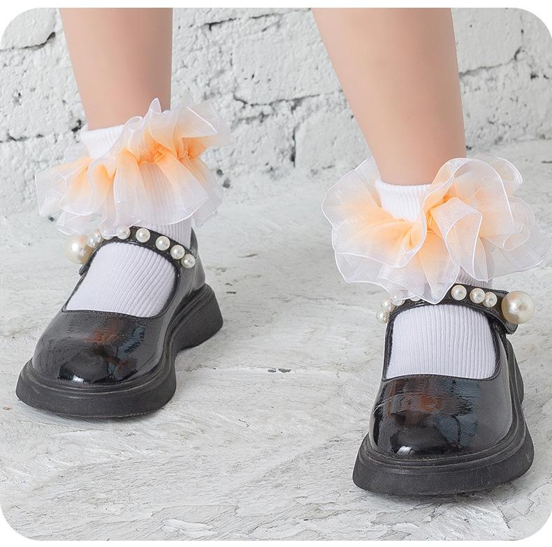 Calcetines de niña Calcetines de encaje para niños Calcetines de princesa de encaje doble Calcetines de baile para niñas pequeñas Primavera y otoño Dulce