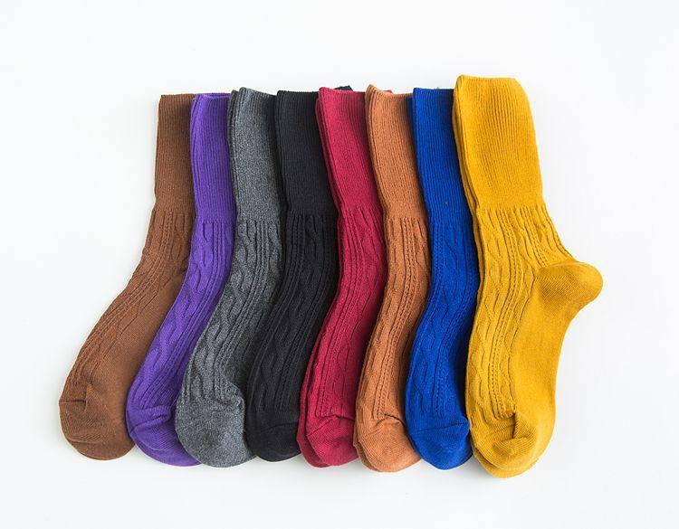 Novidades para o outono e inverno: meias de pelo torcido com punho largo e boca larga para mulheres