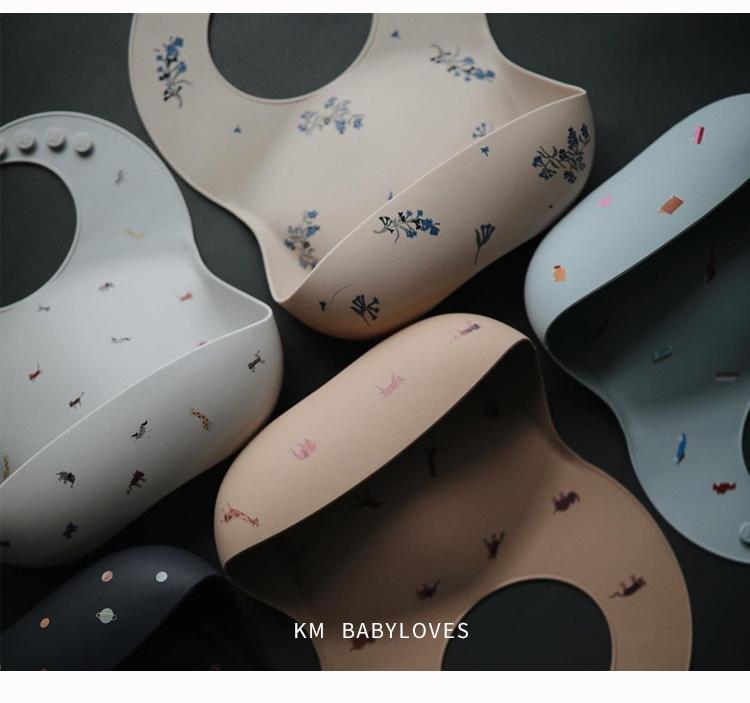 Babador de silicone para bebês, babador para comer, anti-sujo, à prova d'água, impressão infantil, babador de silicone para crianças