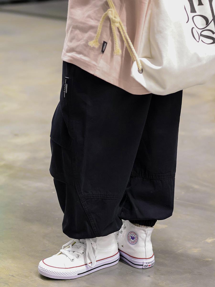 As pernas das calças são estreitas, dando um visual descolado e descolado