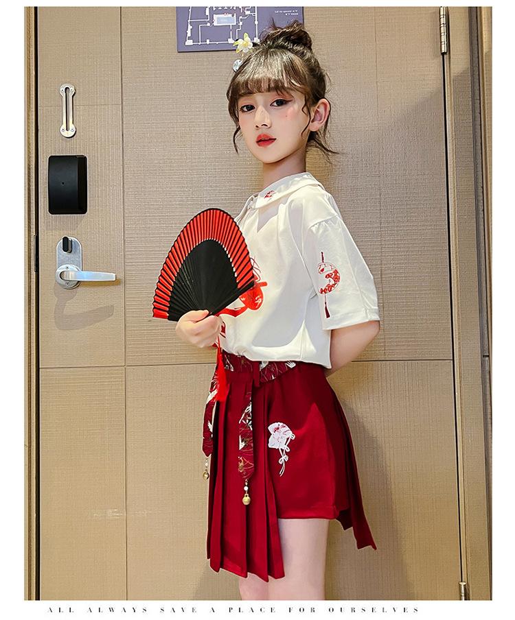 Traje antigo da menina de manga curta saia plissada frito desempenho de rua roupas femininas de verão médio e grande roupas de verão Hanfu terno estilo ocidental estilo chinês