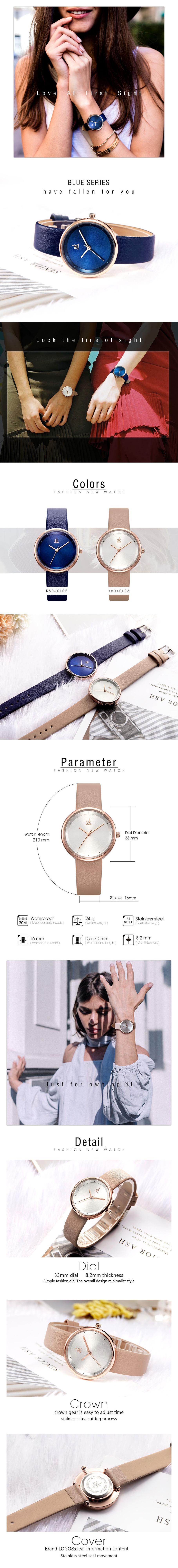 Shengke SK novo relógio de couro fosco com pulseira de ouro rosa padrão de sol relógio feminino 8040