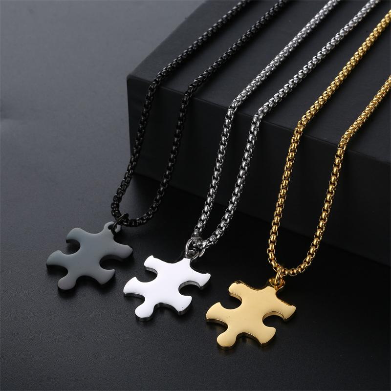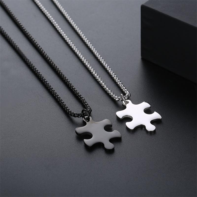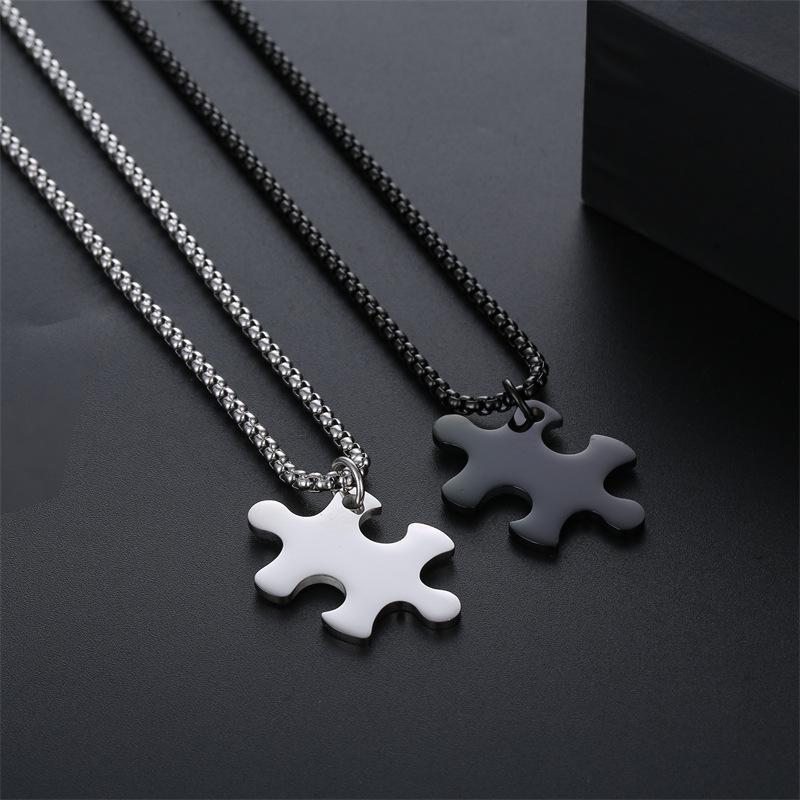 Amazon cross-border supply europeu e americano pingente simples quebra-cabeça casal titânio aço colar masculino e feminino aço inoxidável colar