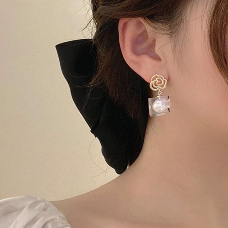 Compre S925 agulha de prata transparente brincos de pérola quadrada francês brincos de alta qualidade brincos de design de nicho brincos estilo de Hong Kong no atacado no Joom.pro