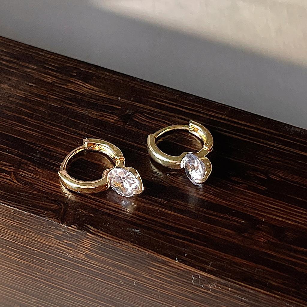 Brincos banhados a ouro genuíno, cristal transparente. Cor irregular, contendo impurezas minerais. Isto é normal.