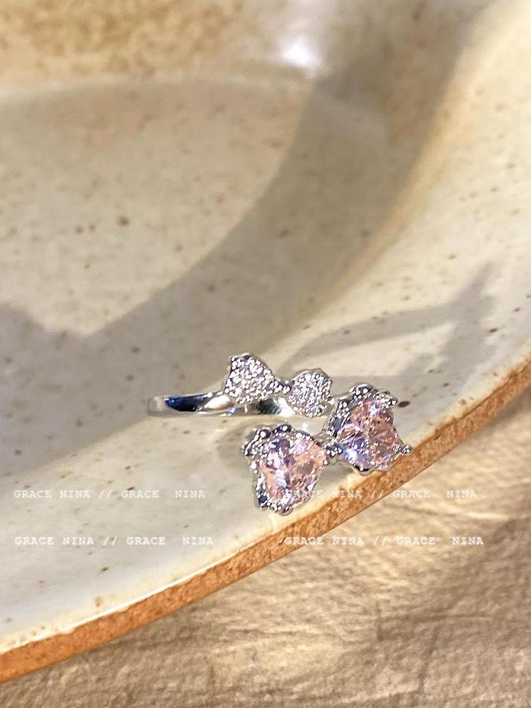 Compre Doce tontura! Anel de laço de diamante rosa feminino leve luxo elegante anel de dedo design de nicho anel de moda de alto sentido no atacado no Joom.pro