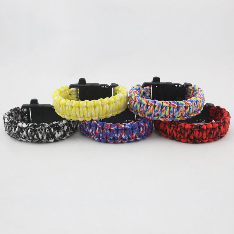 Suministros para Exteriores Venta al por Mayor Supervivencia Paracord Trenzado Silbato Hebilla Pulsera Multifuncional Emergencia Salvavidas Hecho a Mano Pulsera Trenzada
