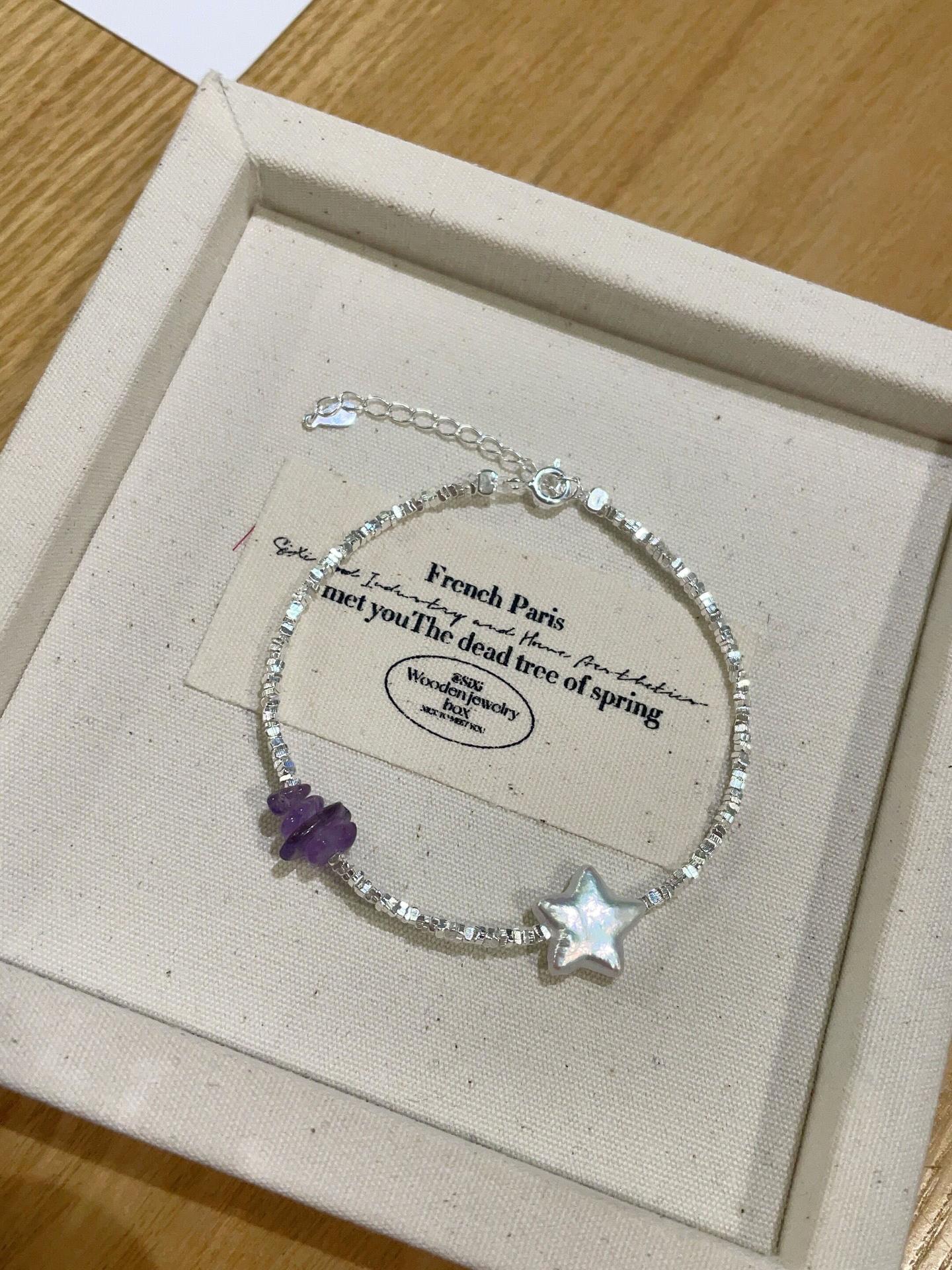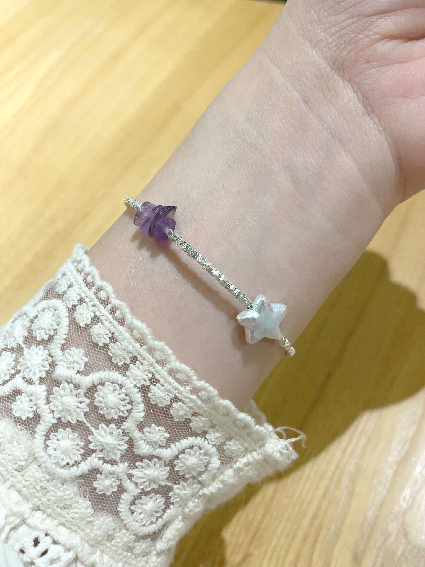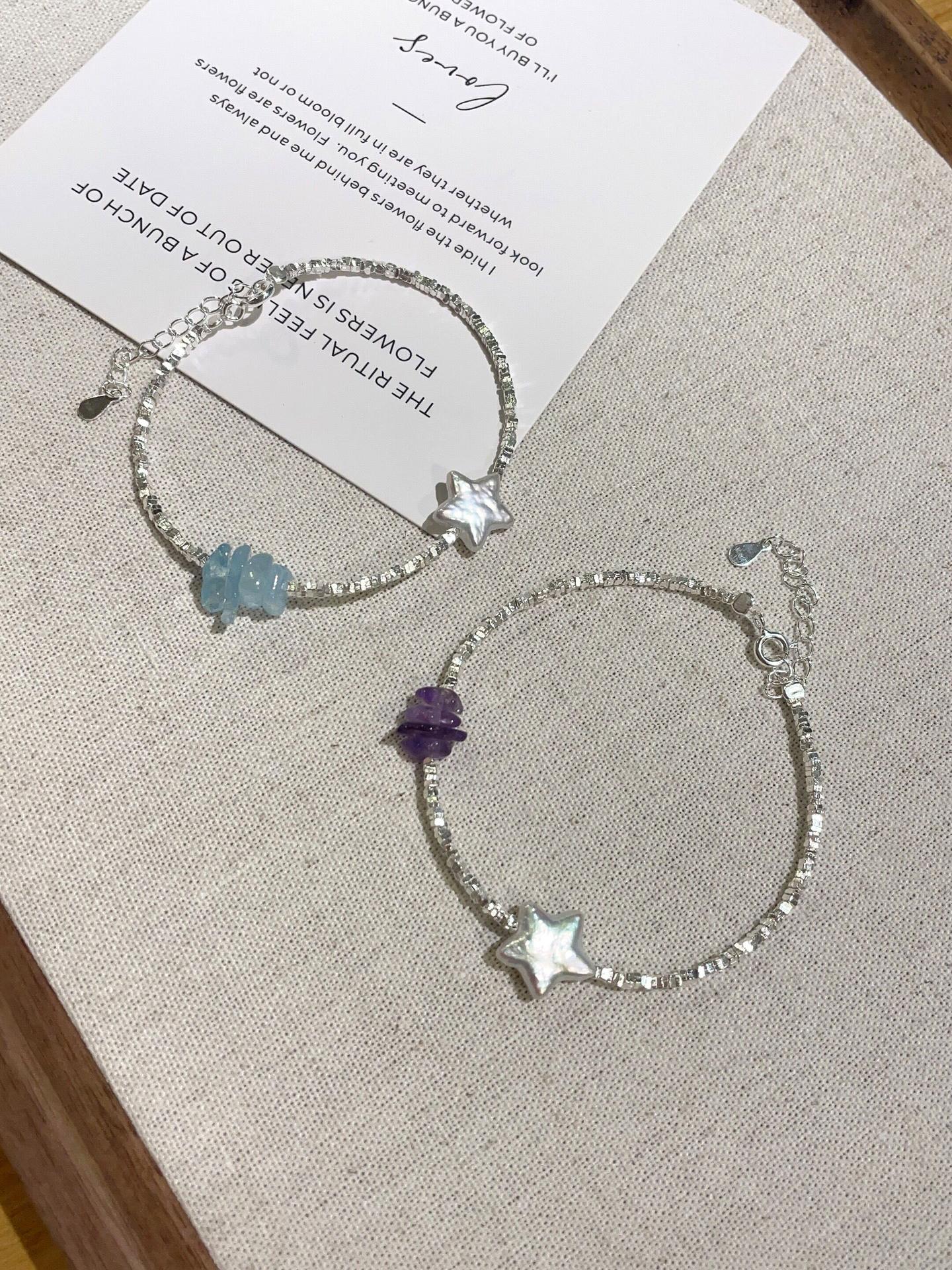 (Os tamanhos de água-marinha e ametista em cada pulseira são diferentes) Tenha cuidado se você se importar