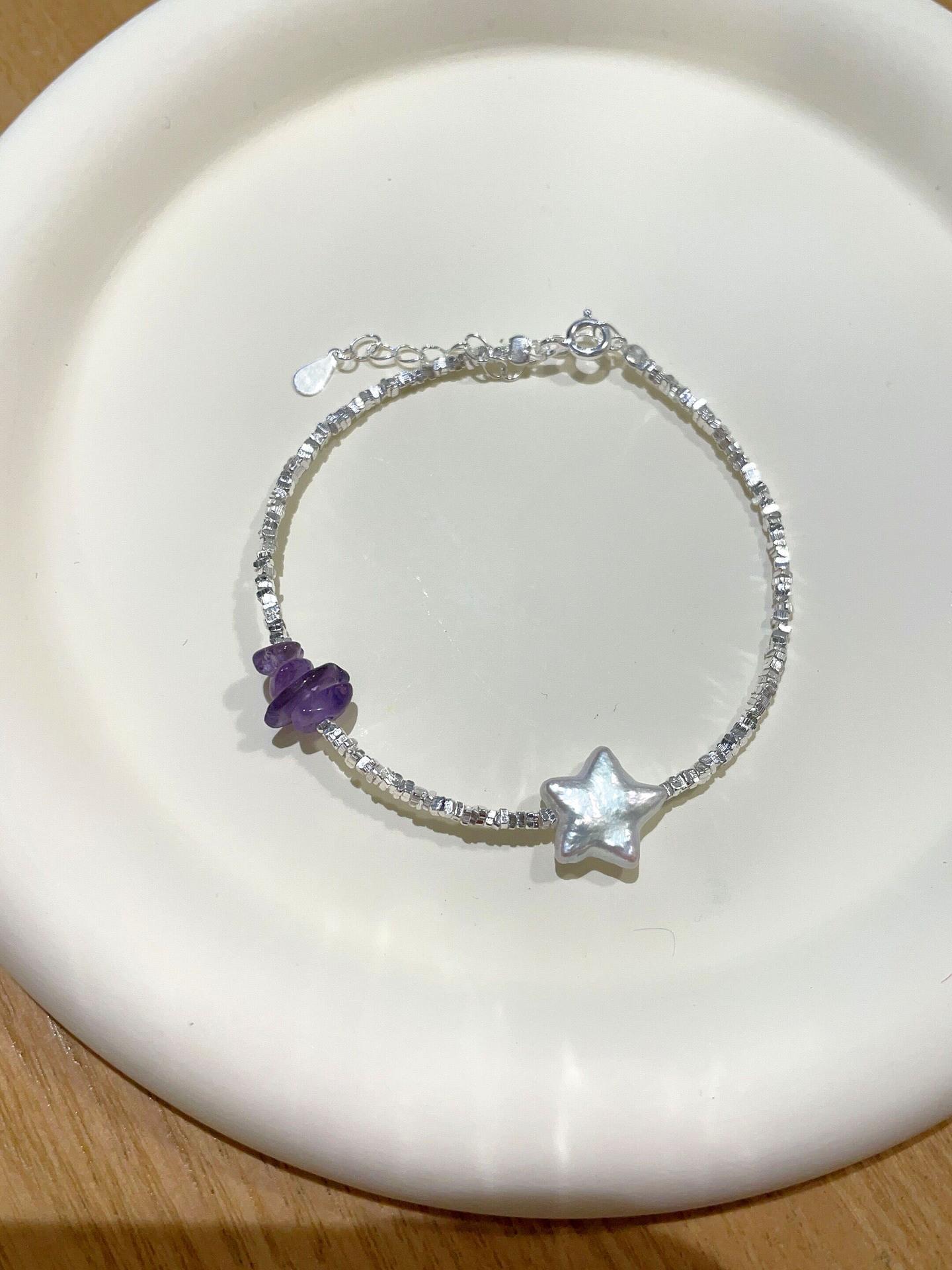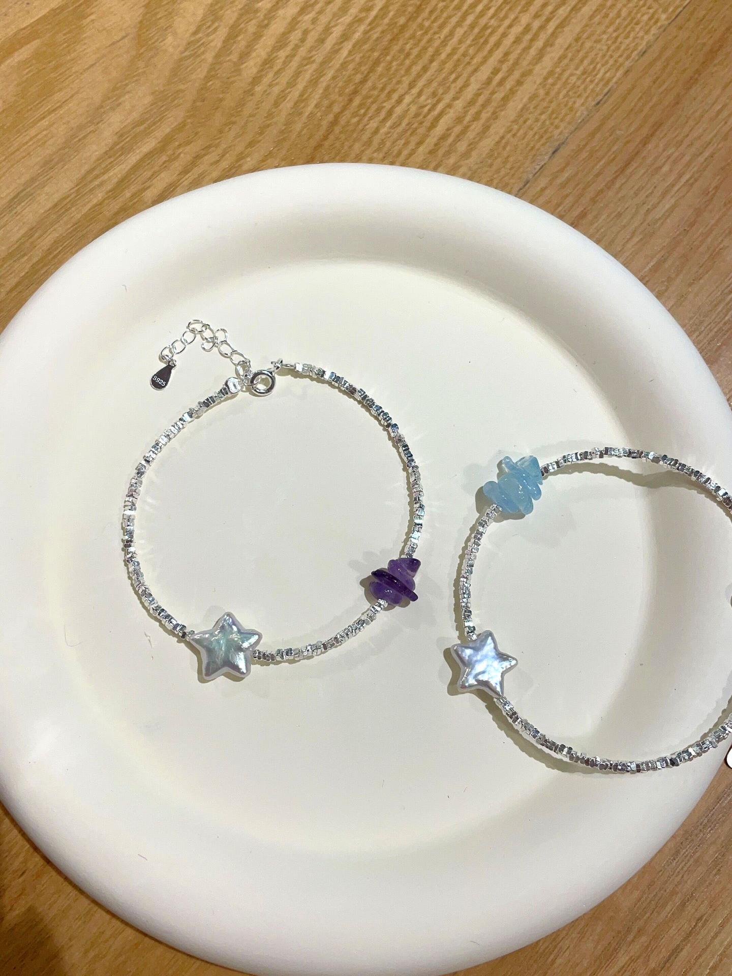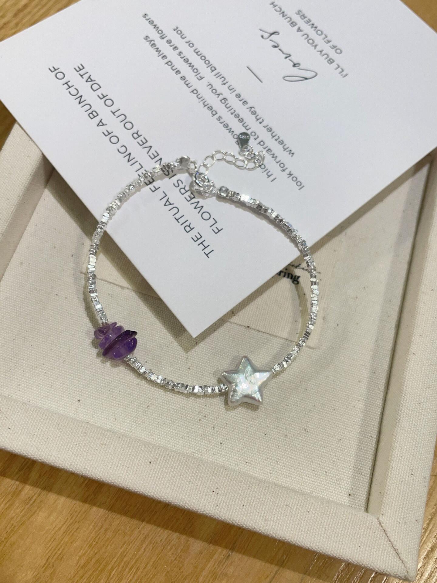 (Os tamanhos de água-marinha e ametista em cada pulseira são diferentes) Tenha cuidado se você se importar